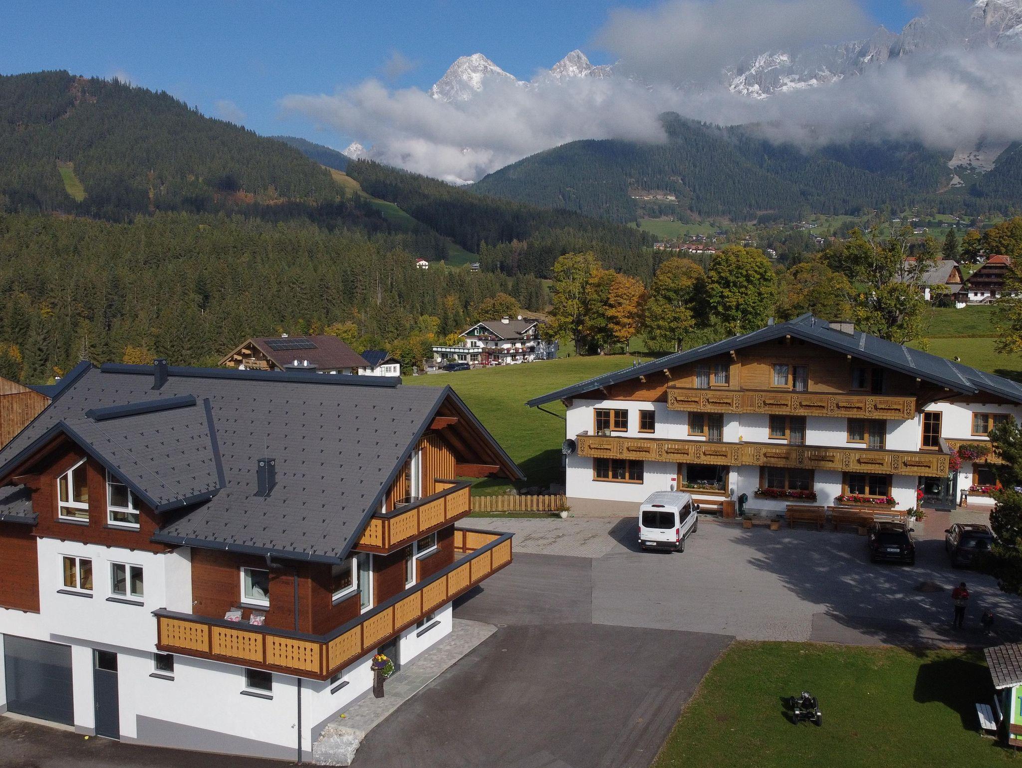 Wir begrüßen Sie herzlich in der Pension Blasbichlerhof mitten im Grünen in ruhiger Lage im malerischen Ortsteil Vorberg von Ramsau am Dachstein. In der Pension Blasbichlerhof können Sie Ihren Urlaub mit Familie und Freunden in vollen Zügen genießen, auch als Gruppe bis zu 30 Personen. Die Haltestelle des kostenlosen Ski- und Linienbusses, der Sie zum familienfreundlichen Skigebiet Rittisberg und zur 4-Berge-Skischaukel im Herzen des Skiverbunds ski amadé bringt, ist nur 3 Gehminuten von unserer Pension Blasbichlerhof entfernt. Die Seilbahn, die Ihnen die imposante Welt des Dachsteingletschers erschließt, ist in nur 15 Autominuten bequem zu erreichen. Hier wird das ganze Jahr Schneegarantie und Pistenspaß pur geboten. Für Wanderungen, Spaziergänge und Mountainbike Touren in der Region Schladming-Dachstein sind wir ebenso der perfekte Ausgangspunkt. Am Morgen werden Sie mit einem großzügigen Frühstücksbuffet begrüßt. Gut gestärkt steht einem ereignisreichen Urlaubstag nichts im Weg. Unsere 15 gemütlichen Zimmer sind alle sehr geräumig und komfortabel eingerichtet, sie verfügen über Dusche/WC, HD Sat-TV und einen großen Balkon mit einem beeindruckenden Blick auf das majestätische Dreigestirn des Hohen Dachsteins. Gerne können Sie bei uns auch mit Halbpension buchen, wo wir Sie am Abend mit einer warmen Buffetplatte direkt am Tisch überraschen. Selbstverständlich nutzen Sie im gesamten Haus Blasbichlerhof das W-Lan kostenfrei. Parken Sie Ihr Auto direkt und sicher vor unserer Pension Blasbichlerhof und stellen Sie Ihre Sport- und Skiausrüstung im Skiraum mit Schuhtrockner ab. In unserem großen Garten mit Liegewiese entspannen Sie in der Sonne, während sich Ihre Kinder auf dem Spielplatz mit Schaukel, Rutsche, Trampolin und im Spielhaus austoben. Auf unserem Bauernhof Blasbichlerhof ist immer etwas los – kein Wunder bei so vielen Tieren, die schon auf die täglichen Streicheleinheiten warten. Weiters gibt es zwei Aufenthaltsräume mit TV, DVD und Playstation 4 - Konsole. Zusätzlich können Sie sich nach einer anstrengenden Wanderung in den Ramsauer Bergen oder nach einem aufregenden Skitag in der Region ski amadé in unserem neu errichteten Saunabereich mit Sauna, Dampfbad und Infrarotkabine erholen. Im Winter kehren Ramsauer Gäste gerne in der von unserer Familie geführten 400 Jahre alten Halseralm ein. Die Halseralm erreichen Sie zu Fuß über idyllische Winterwanderwege oder mit den Langlaufskiern über gut präparierte Loipen, die direkt zur Hütte und noch weiter rund um den Rittisberg führen. Eine romantische Pferdeschlittenfahrt zur Halseralm kann bei den Ramsauer Bauern gebucht werden. In der warmen Stube verwöhnt Sie unsere Familie bei heißem Glühwein oder Jagertee mit Spezialitäten aus der Region. Was bei einem Besuch auf der urigen Halseralm auf keinen Fall fehlen darf, ist der flambierte Kaiserschmarrn! Nützen Sie über 100 Urlaubsleistungen ohne einen Cent extra zu bezahlen mit der Schladming-Dachstein Sommercard. Ob Wintersport begeistert, aktiv im Sommer oder erholungssuchend - in Ramsau am Dachstein vergessen Sie Ihren Alltag und tauchen ein in die faszinierende Berg- und Erlebniswelt der Alpen. Eine stets bestens präparierte Langlaufloipe des WM-erprobten Langlaufnetzes führt direkt an unserem Haus vorbei. Rund 70 km Winterwanderwege stehen unseren Spaziergängern und Wanderern, die die verschneite Ramsauer Winterlandschaft genießen wollen, zur Verfügung. Zu unseren Gästen zählen auch Olympiasieger und Weltmeister, die sich jedes Jahr im Herbst auf die bevorstehende Wintersaison vorbereiten. Wir würden uns freuen, auch Sie bei uns am Blasbichlerhof in Ramsau am Dachstein willkommen heißen zu dürfen, Ihre Familie Knaus