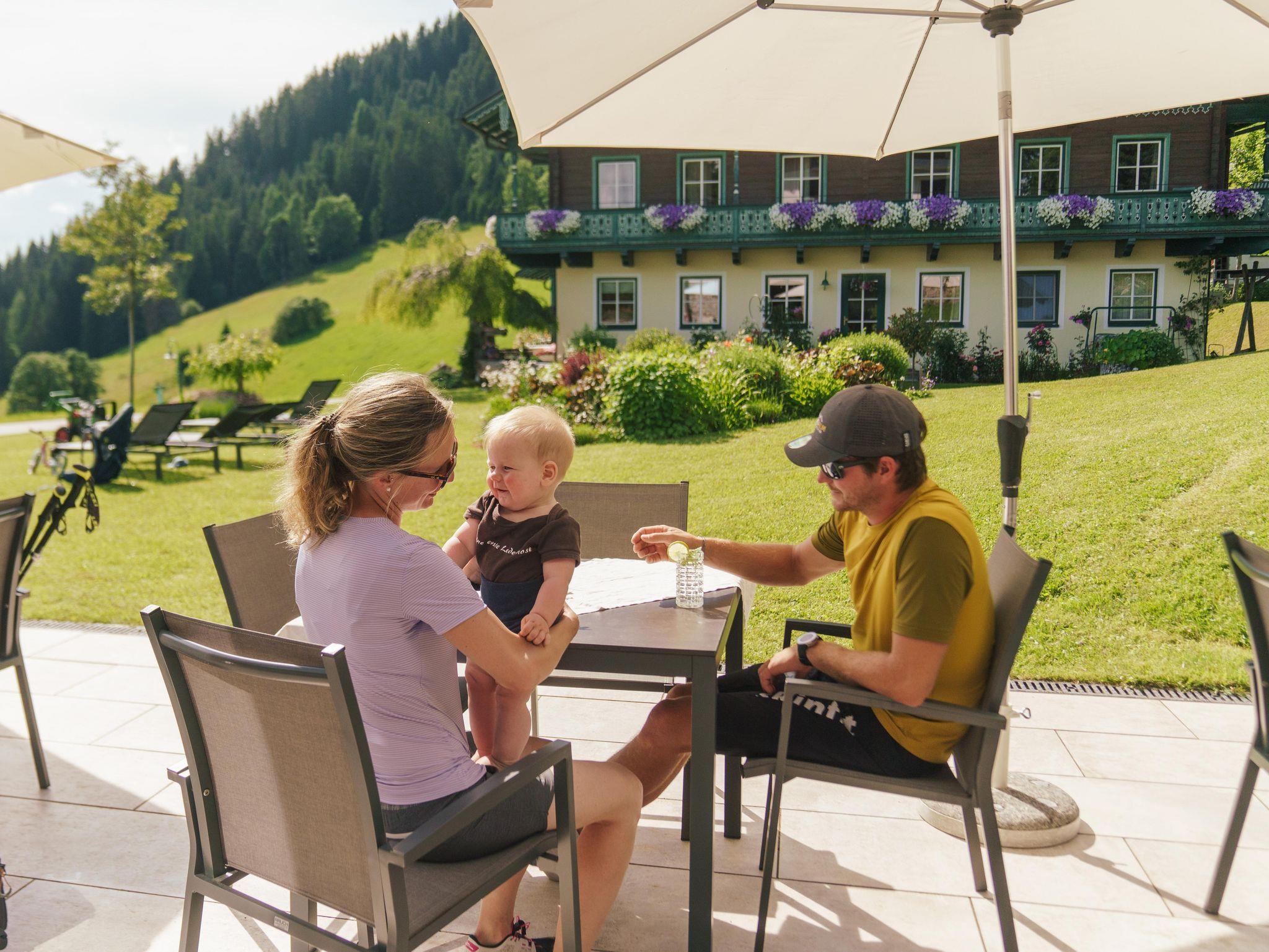 Die Eltern genießen währenddessen eine wohltuende Auszeit, in unserem von der Senior-Chefin mit Liebe zu Detail gestalteten Garten.