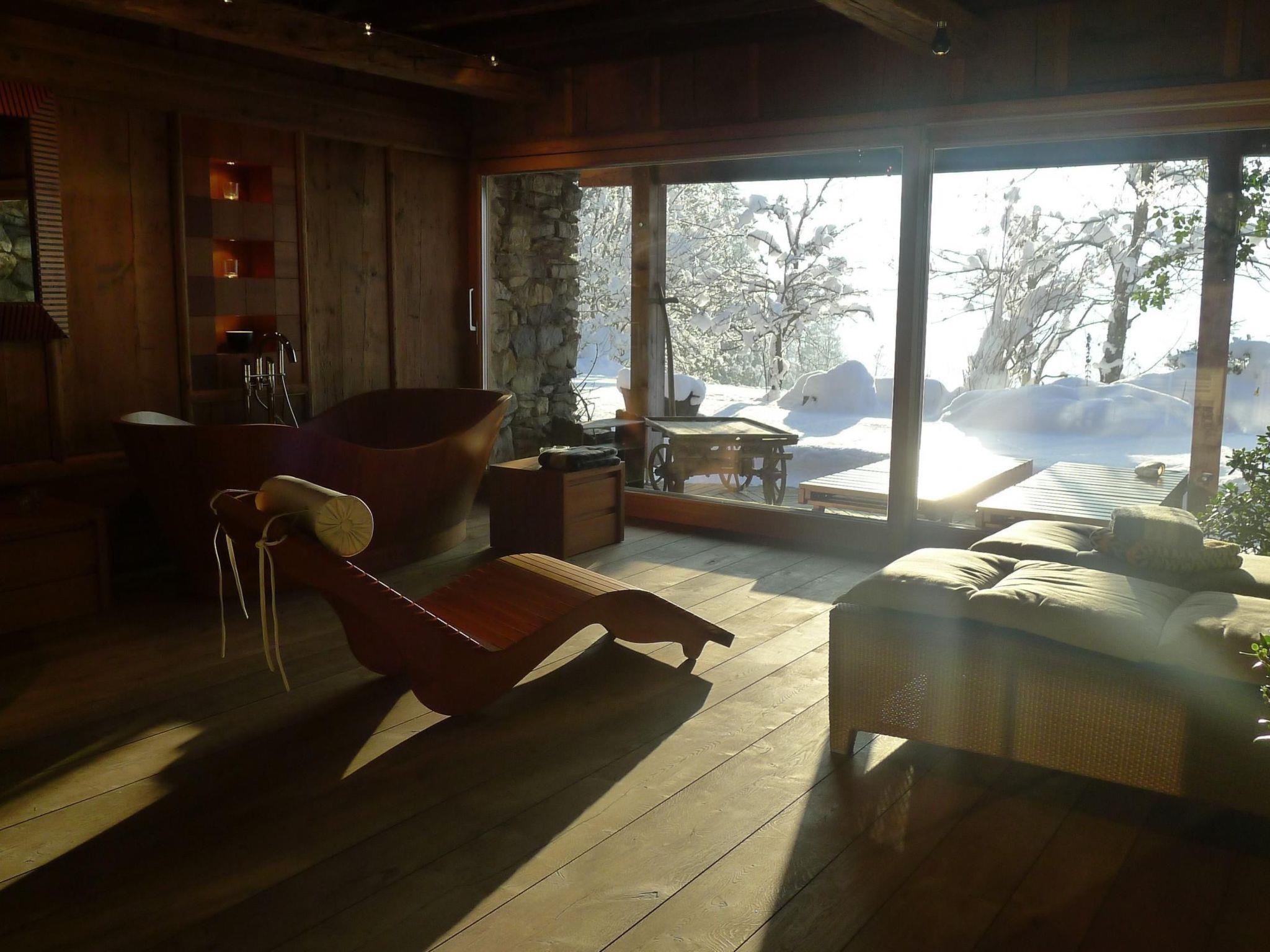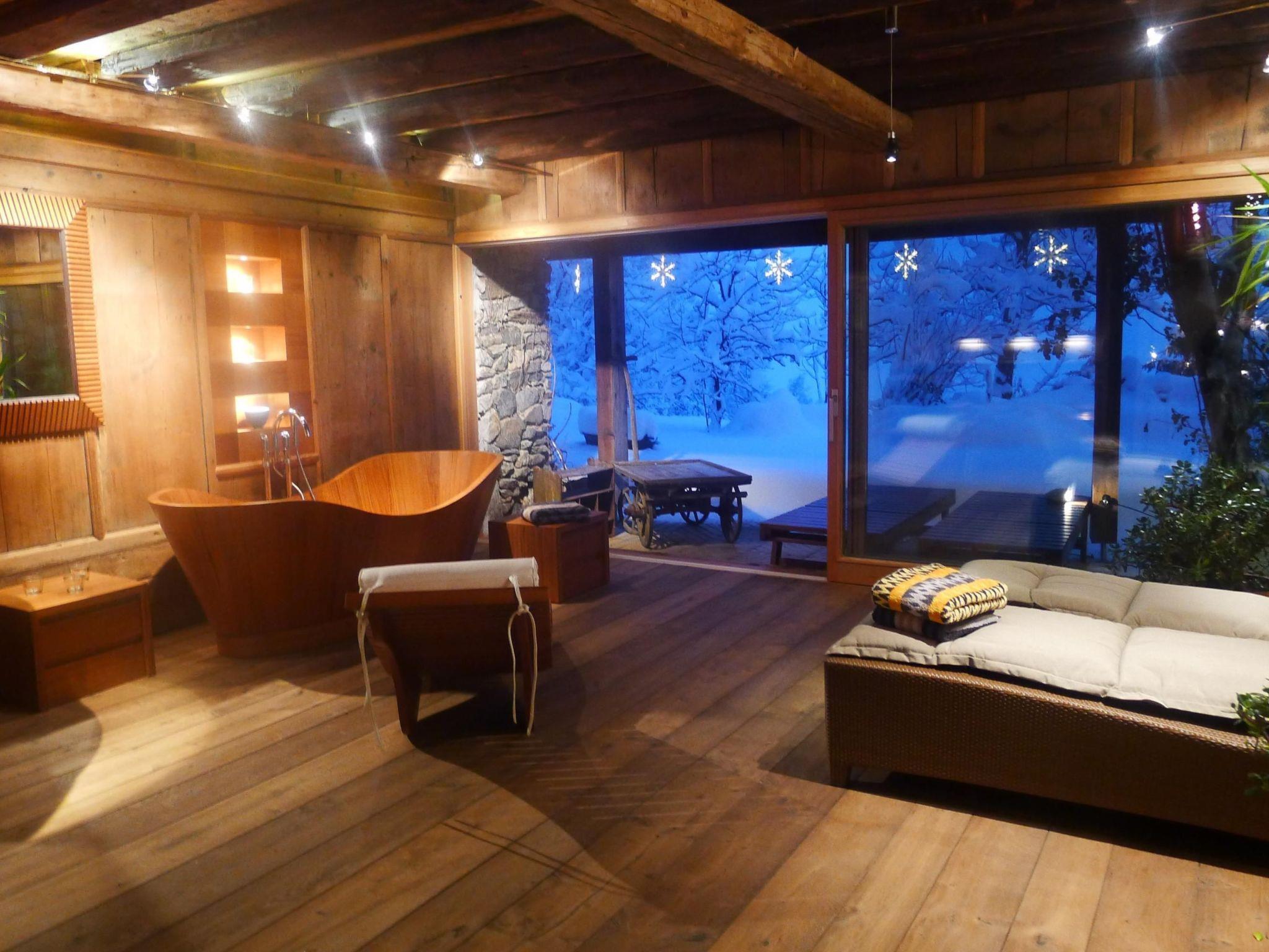 Since October 2014, our guests have had access to a 40 m² wellness area with sauna, free-standing wooden bathtub and shower. NEW: since May 2017 large outdoor whirlpool with coloured light therapy and music
