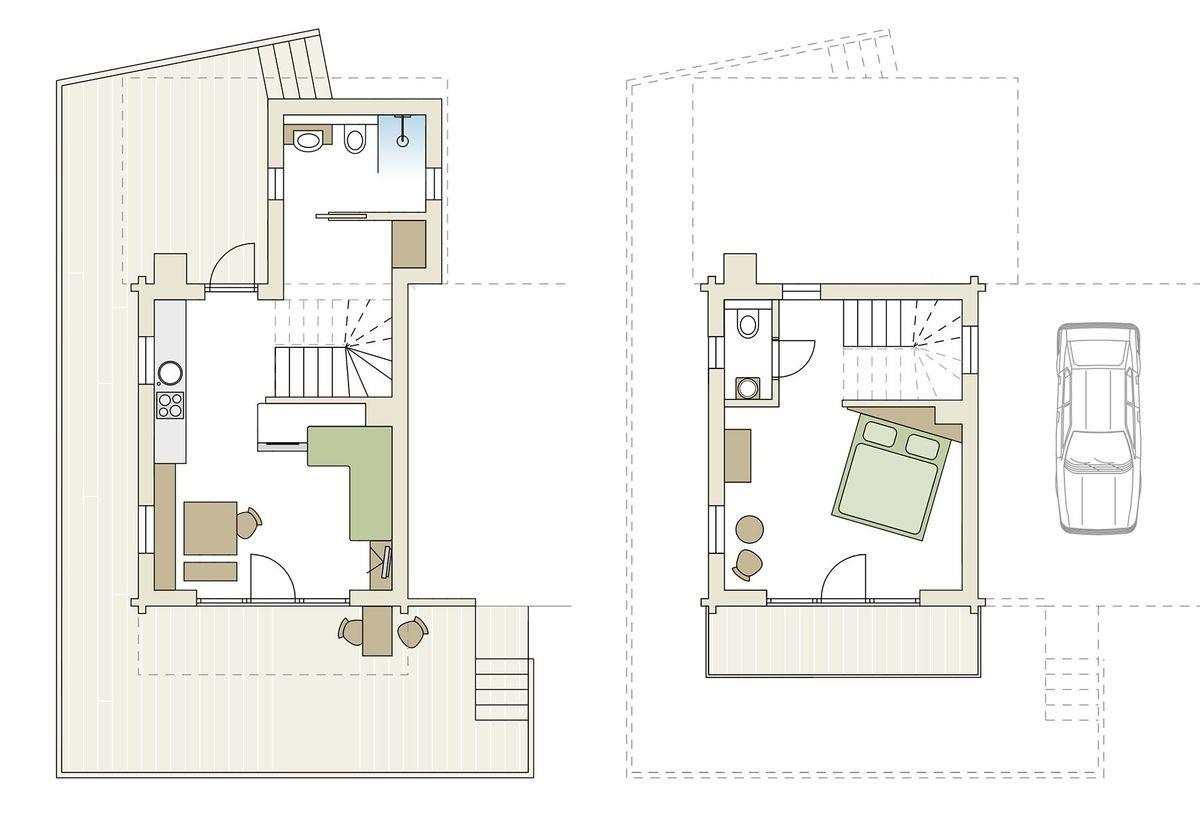 Die Hütte mit 48 m² bietet ausreichend Platz für zwei Personen, um sich so richtig wohl zu fühlen. In der gemütlichen Stube mit voll ausgestatteter Küche, Essplatz, gemütlichem Diwan sorgt der Kachelofen durch das Knistern des Holzes für urige Hüttenatmosphäre. Genießen Sie die frische Bergluft auf der großen Sonnenterrasse mit Sonnenliegen, Grill und gemütlicher Sitzecke. Das Badezimmer ist mit Dusche und WC ausgestattet. Im kuscheligen Doppelbett im Obergeschoß werden Sie morgens von der Sonne geweckt und dem wohl grandiosesten Ausblick auf die Zillertaler Berge belohnt.