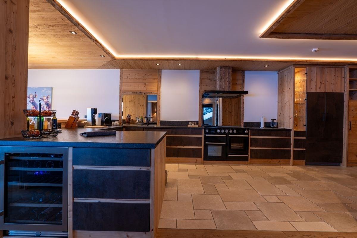 Die erstklassig ausgestattete Designküche mit Falcon-Induktionsherd, Dampfgarer sowie hochwertigem Fondue- und Raclette-Geschirr lädt zu genussvollen Abenden ein. Ein besonderes Highlight ist der private Wellnessbereich mit Sauna und Infrarotkabine sowie der beheizte Außenwhirlpool – perfekt zum Entspannen mit Blick auf die Zillertaler Bergwelt.