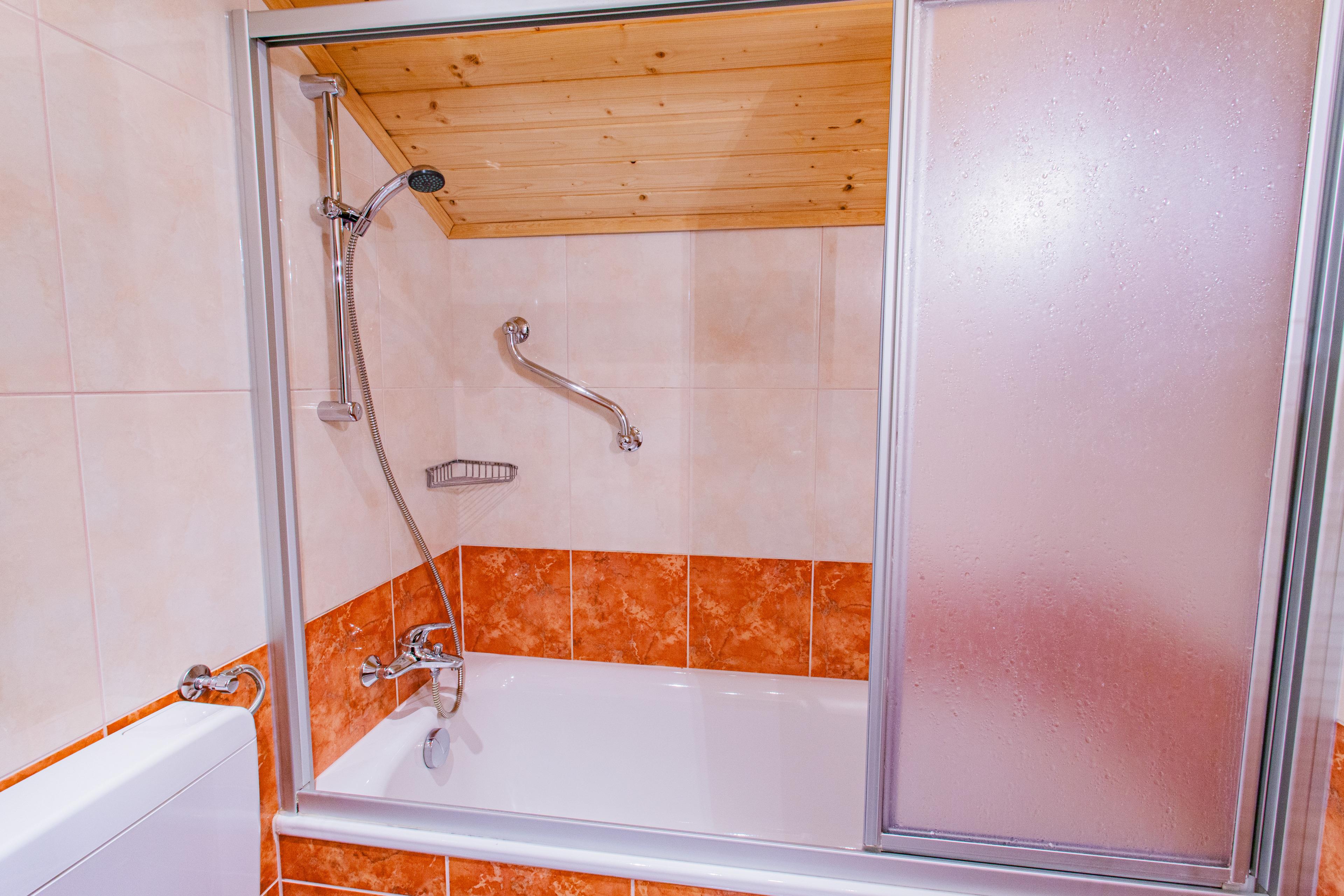 Badeværelse med bruser og badekar