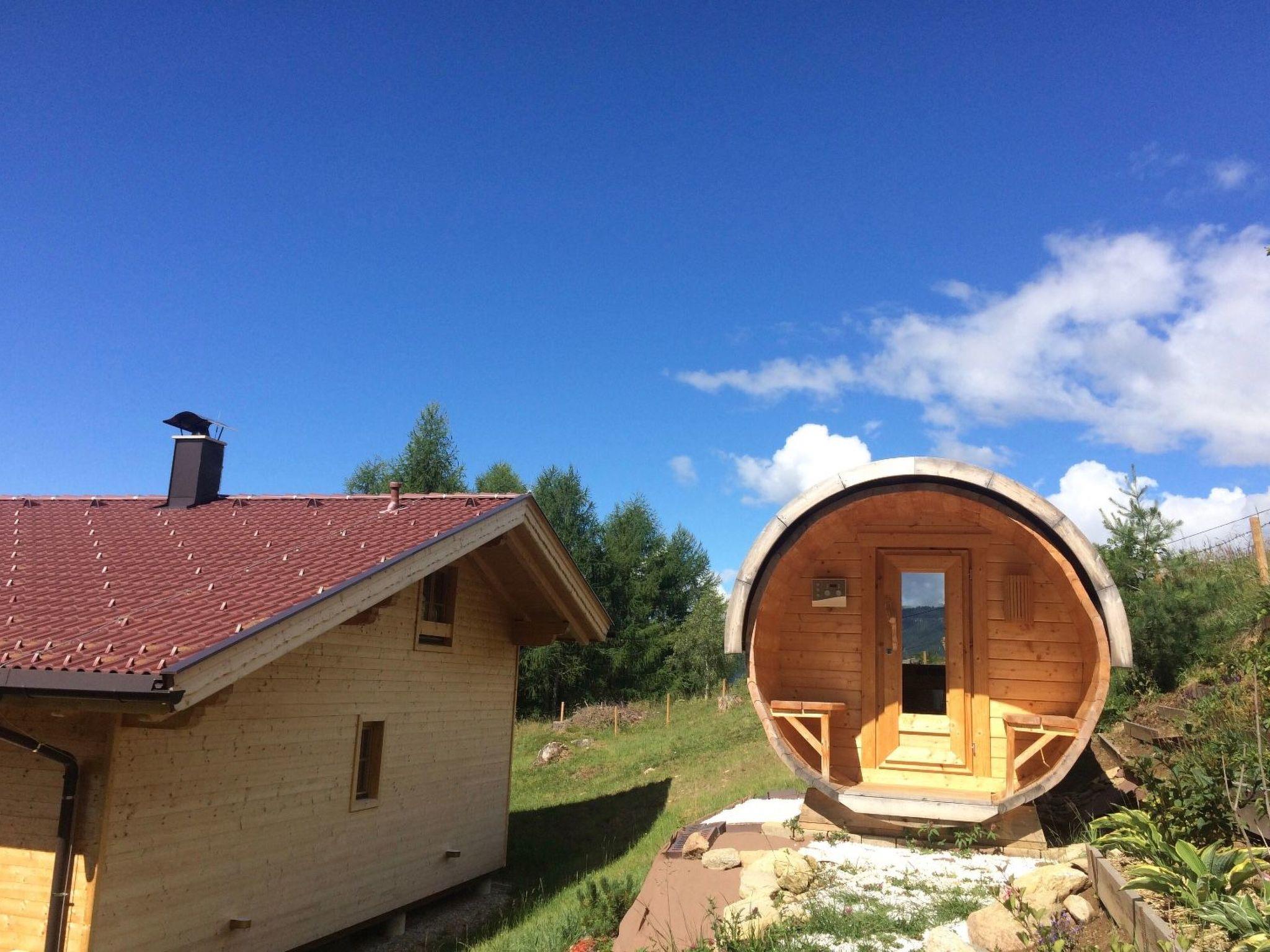Your holiday home has a furnished veranda with fantastic mountain views. There is also a barrel sauna with views of the Dolomites in the fully enclosed garden area for your exclusive use. The hut can be reached by car at any time of year. You can park your car in the three private outdoor car parks.