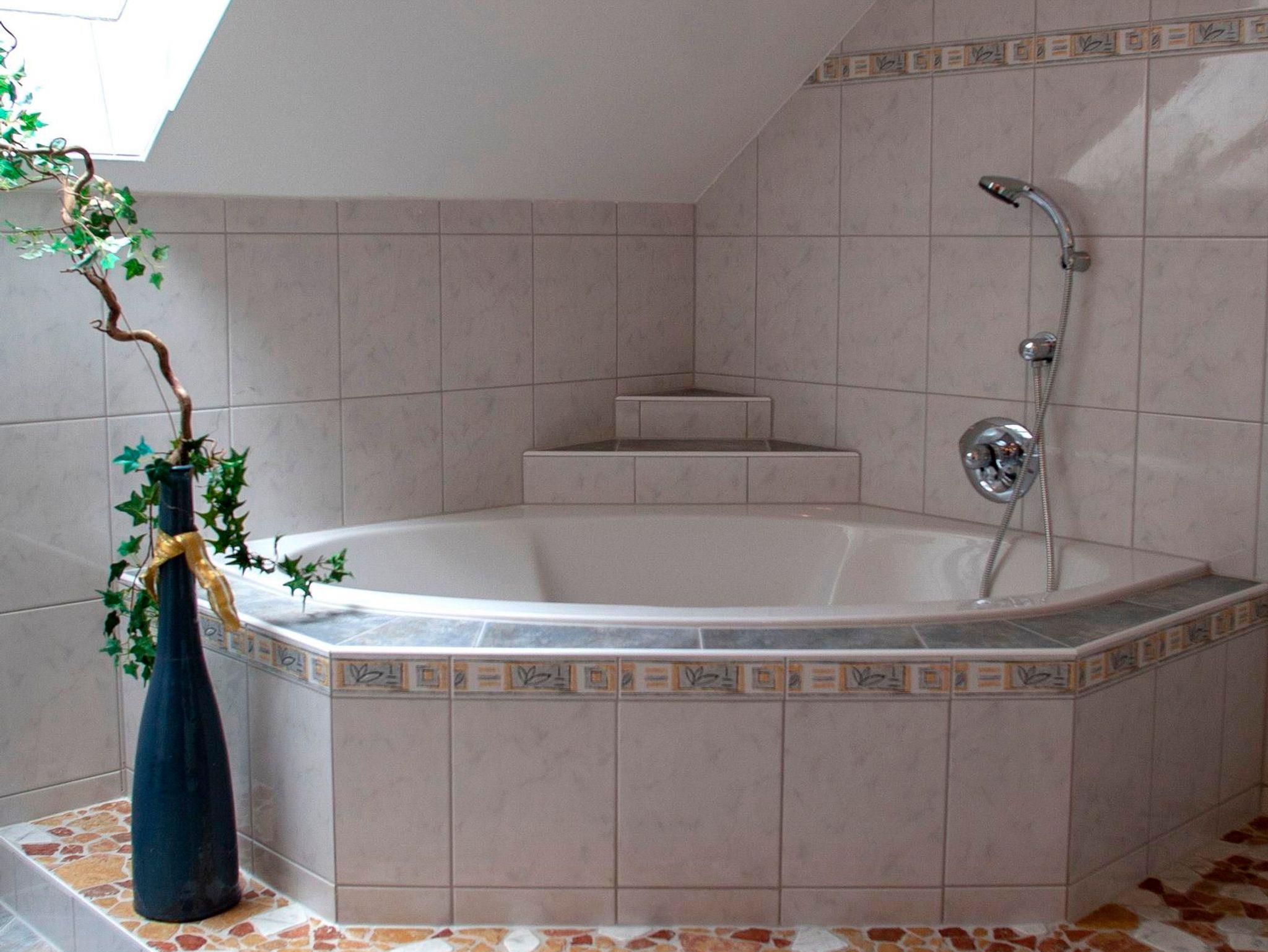 Wohnraum 100m² groß, gut sortierte Vollholzküche mit großem Esstisch, ein Zweibett- ein Dreibettzimmer und 4 Einzelbetten für die Kinder, großes Badezimmer mit getrennten Waschbecken, Badewanne, Dusche, 2 WCs, Vorraum, SAT-TV