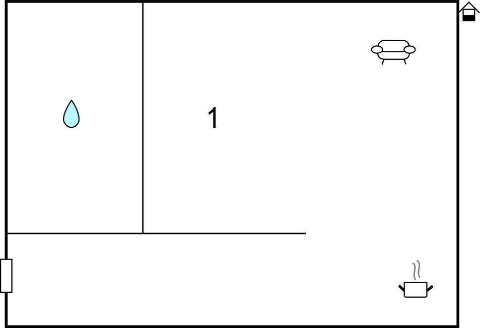 Opholdsstue/køkken - 1 Soveplads. (Sofa, madras eller lignende).