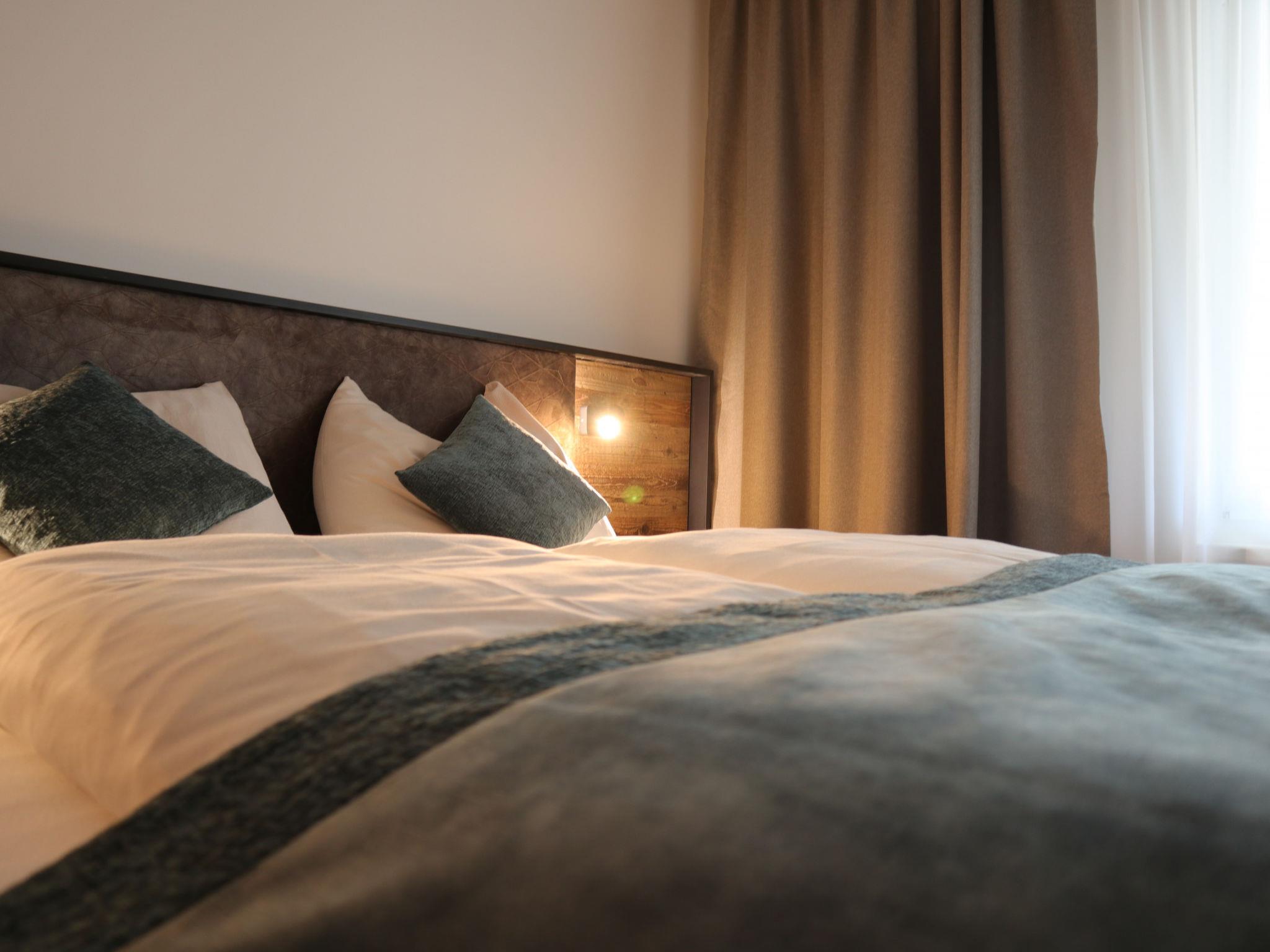 "Penthouse mit 3 Schlafzimmern & Sauna", 4-room apartment 80 to 100 m2. Bright, comfortable and tasteful furnishings: living/sleeping room with 1 double sofabed, dining table, satellite TV and flat screen. 3 double bedrooms. Open kitchen (oven, dishwasher, 4 ceramic glass hob hotplates, toaster, kettle, microwave, freezer, electric coffee machine). 2 showers/WC, sep. WC. Balcony. Balcony furniture. Beautiful view of the mountains. Facilities: sauna. Internet (WiFi, free). Garage. Please note: non-smokers only. The property is one of a type of property or apartment. The sauna is outside! 50617-000049-2020