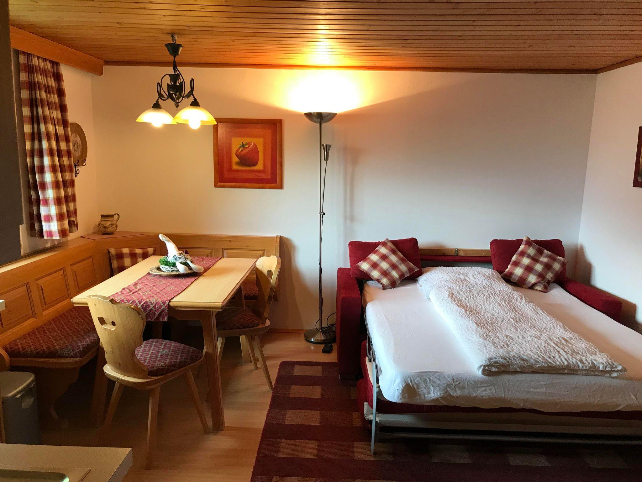 1 Wohn-Schlaf-Küche (Doppelschlafcouch), Küchenzeile mit Elektroherd, Mikrowellengrill.