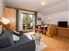 Neu renoviertes und eingerichtetes Vierbettzimmer mit Dusche und WC, Balkon südseitig, Farb-TV, Radiowecker und gemütliche Sitzecke;