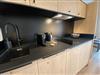 • Küchenzeile mit 2-Platten-Herd; Mikrowelle, Backofen, Geschirrspüler, Kühlschrank