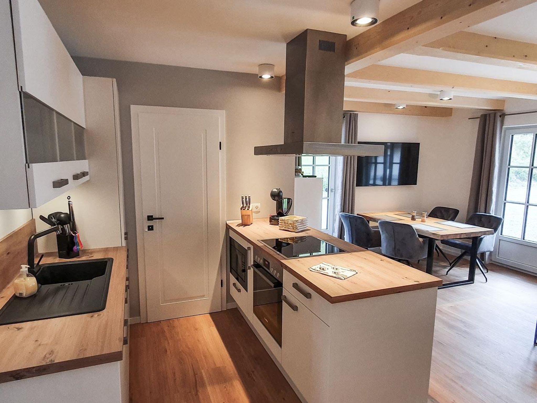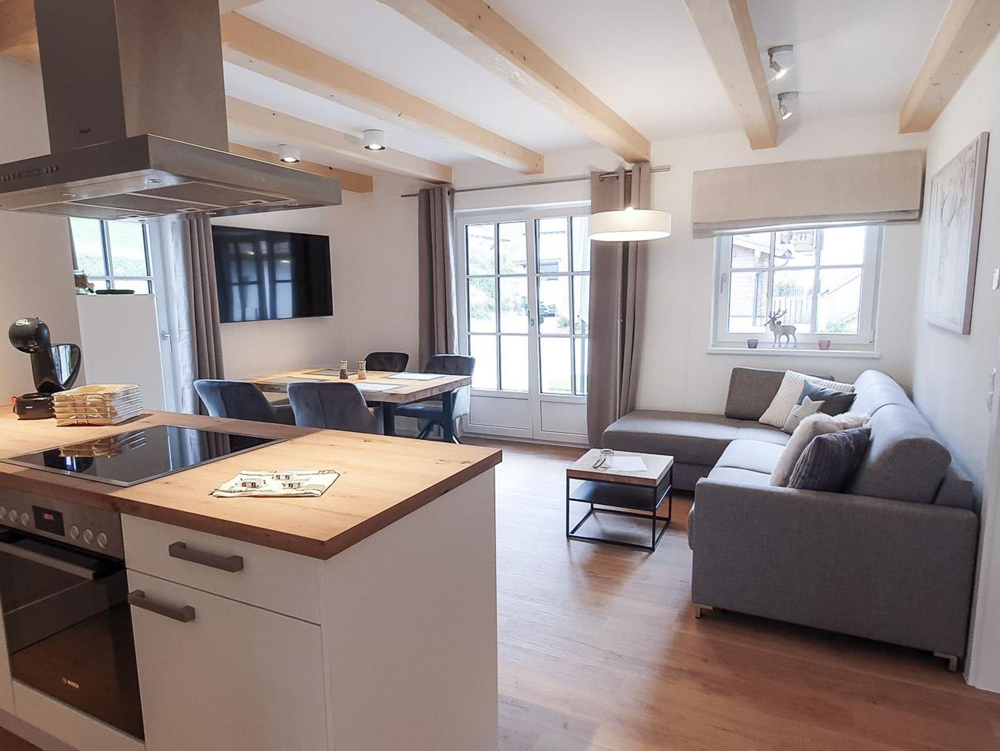 Die Wohnung mit zwei Schlafzimmern befindet sich im Erdgeschoss mit Südterrasse. Die Schlafzimmer sind groß und modern mit Boxspringbett und Flatscreen TV. Ein modernes Badezimmer mit Dusche und WC sowie einem Fenster, gehört ebenfalls zu dieser Ausstattung. Unsere Gäste können nach der Rückkehr von ihren täglichen Aktivitäten an ihrer Bar sitzen, die in das offene Küchenkonzept integriert ist. Von dem wunderschön gestalteten, gemütlichen und hochwertig eingerichteten Wohn-Essbereich mit großem Flachbildfernseher, haben Sie einen Blick auf den Hohen Sonnblick (3106 m). Außerdem verfügt die Wohnung über eine eigene Außensauna und einer 11 KW Wallbox.