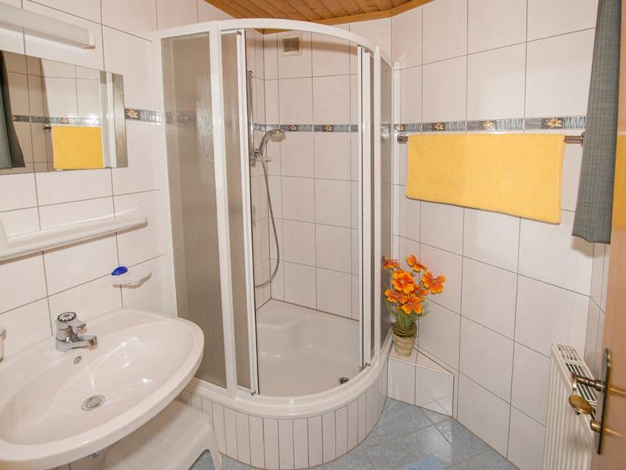 FEWO 60m2, Vorraum, Dusche, 2 WC, Wohnschlafküche (Raumteiler) Sitzecke im Erker, WLan, Ausziehcouch, Geschirr, Hand-/Duschtücher, Cafemaschine, Mikro, Toaster, Wasser/Eierkocher, Fön, Kabel-TV, 1 3-Bettz.mit TV, 1 2-Bettz., TV, Babybett, Parkplatz.