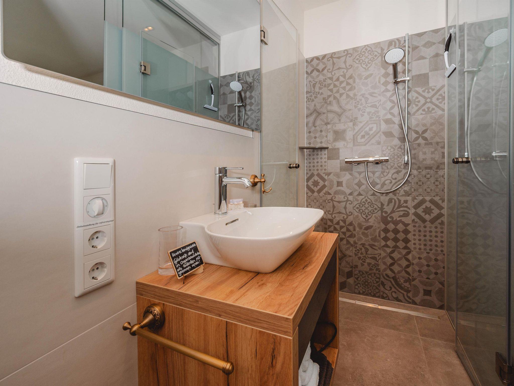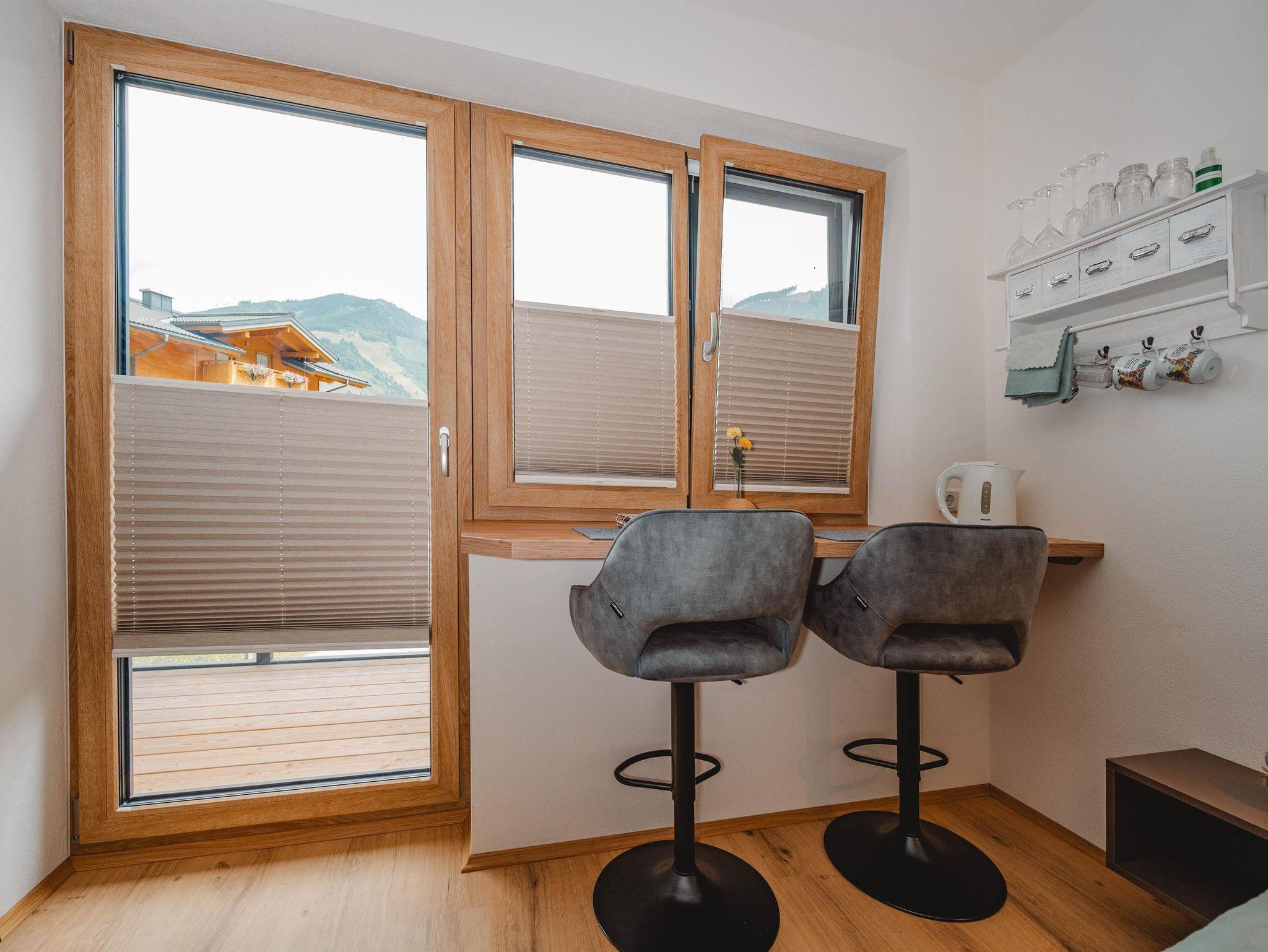 Unser neues, lichtdurchflutetes Doppelzimmer bietet vom Frühjahr bis zum Spätsommer angenehmes Morgenlicht. Eine stilvolle Glaswand mit Rauriser Bergwelt-Motiv und Schiebetür trennt das Zimmer vom modernen Bad mit ebenerdiger Dusche, WC und Infrarotspiegel. Zwei Barhocker und eine breite Fensterbank laden zum Lesen, Schreiben, Kaffeetrinken oder Fernsehen ein. Der großzügige Ostbalkon eröffnet den Blick auf die umliegenden Berge und die ruhige Straße sodaß er zum Verweilen einlädt. Auf Wunsch servieren wir ein Frühstück am Zimmer in Form eines liebevoll zusammengestellten Frühstückskorbs.Auf Anfrage stellen wir gern einen kleinen Kühlschrank bereit.Das Doppelzimmer kann auch als zusätzliches Schlafzimmer zum Apartment dazugebucht werden.