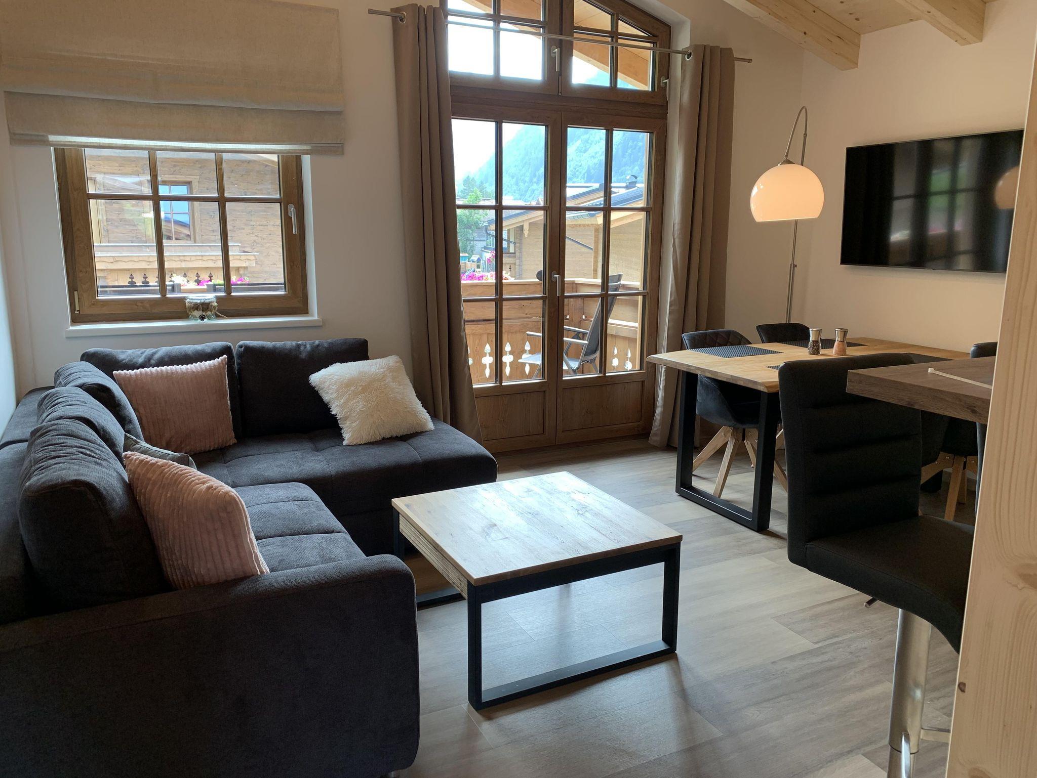 Das Appartement befindet sich im Obergeschoss und hat 2 Schlafzimmer mit Boxspringbett, Schrank, großem TV Flachbildschirm, der Wohnbereich hat zusätzlich einen nach Süden ausgerichteten Balkon. Darüber hinaus haben wir ein modernes und gemütliches Bad mit Fenster. Wenn Sie von Ihren Unternehmungen zurückkehren können Sie sich, an der in die Wohnküche integrierten Bar, erholen. Vom großzügig gestalteten und gemütlich und hochwertig eingerichteten Wohn- Essbereich mit großem TV Flachbildschirm haben Sie einen Blick auf den Hohe Sonnblick (3106 m).
