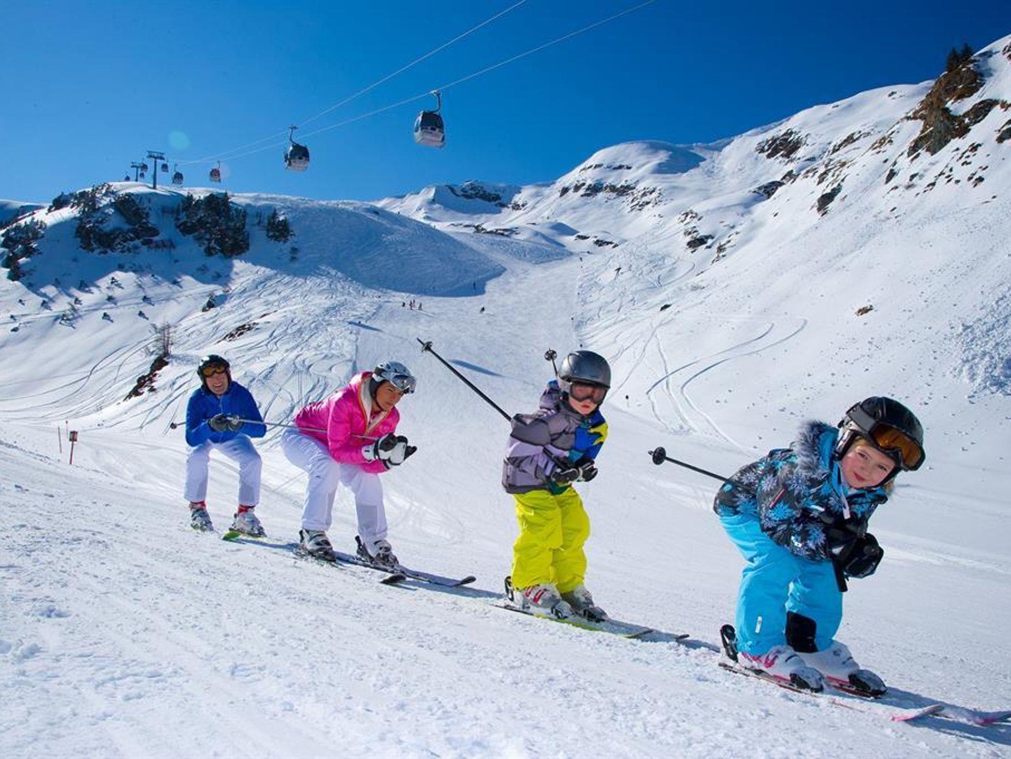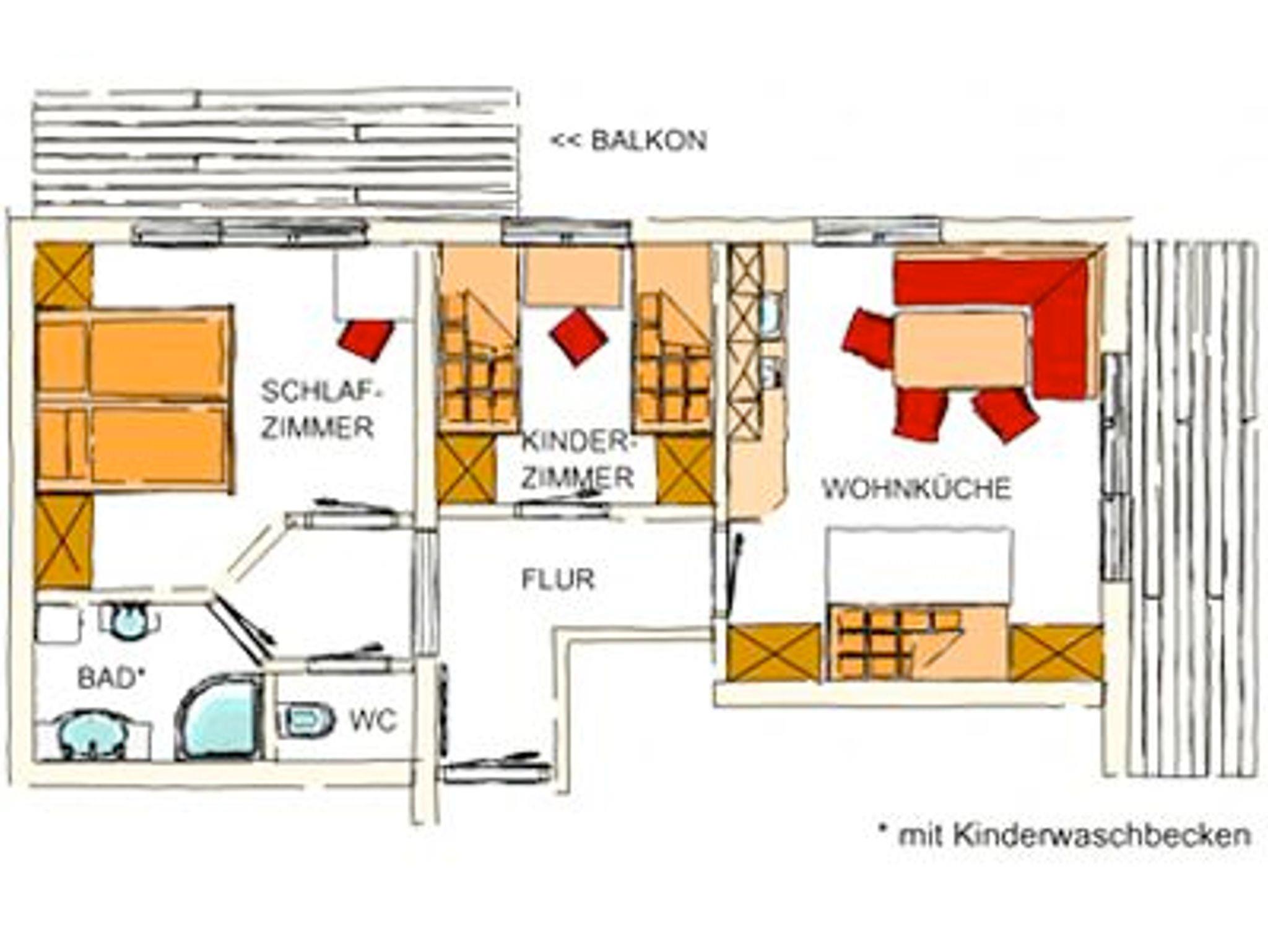 Doppelbettzimmer mit Platz für Gitterbett, Kinderzimmer mit Etagenbett und einem Einzelbett, Süd- und Ostbalkon, Küchenzeile im Wohnraum, Geschirrspüler, Mikrowelle Großer Esstisch Bad / WC, getrennt Kabel-TV, Safe, W-Lan gratis