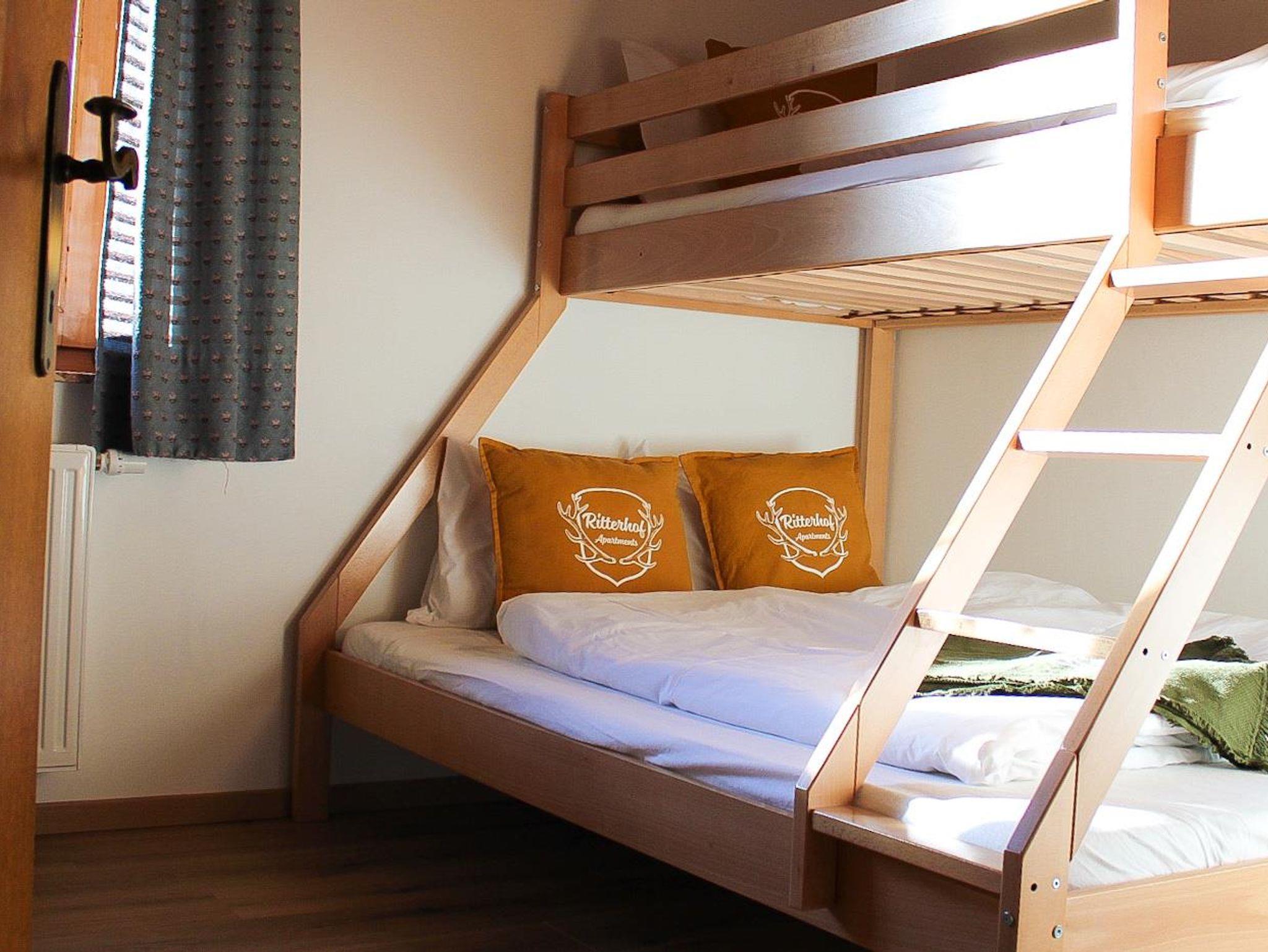 Es gibt 2 Doppelzimmer, 3 Personzimmer, zusätzlich haben wir ein Hochbett für zwei Personen gebaut.