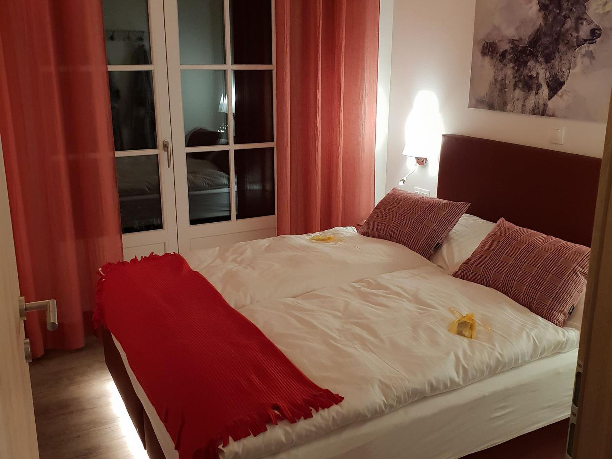 Im Obergeschoß befinden sich 3 Schlafzimmer mit Boxspringbett, Schrank, großem TV Flachbildschirm und jeweils einem Balkon. Darüber hinaus haben wir im Obergeschoß 2 moderne und gemütliche Bäder.