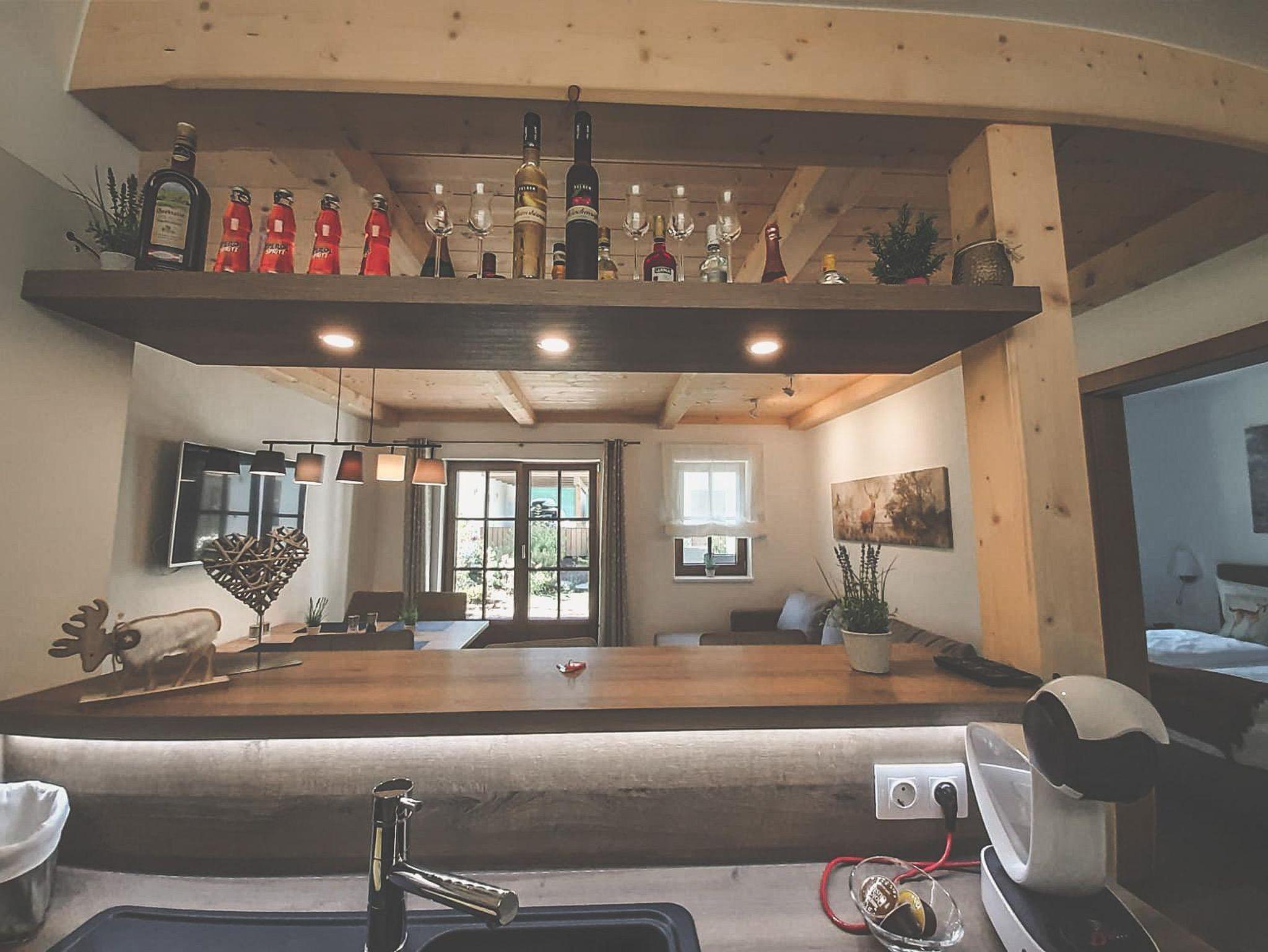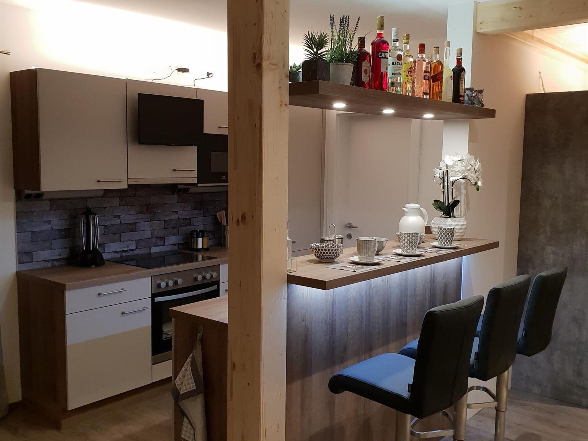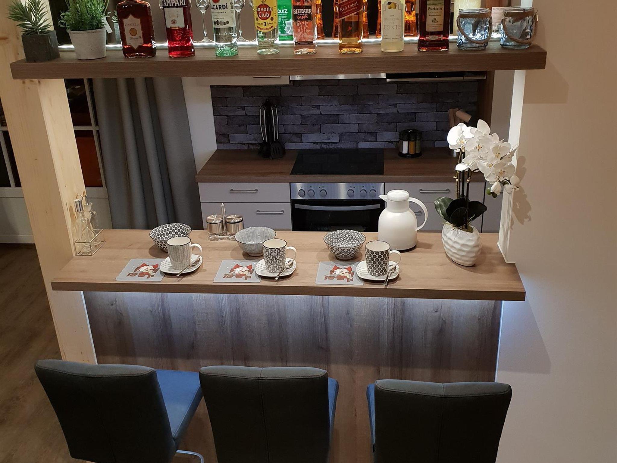 Im Erdgeschoß des Hauses befindet sich der großzügig gestaltete und gemütlich und hochwertig eingerichtete Wohn-Essbereich mit großem TV Flachbildschirm. Wenn Sie von Ihren Unternehmungen zurückkehren können Sie sich an der in die Wohnküche integrierten Bar erholen. Des weiteren steht Ihnen im Erdgeschoß ein Gäste WC zur Verfügung.