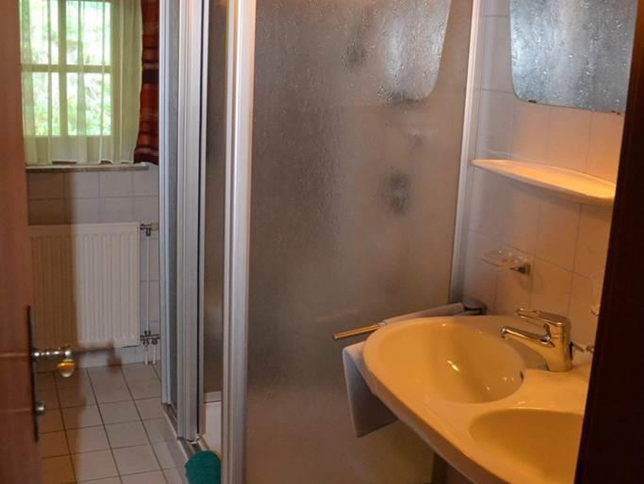 Im Badezimmer gibt es einen Föhn, Dusche und WC.