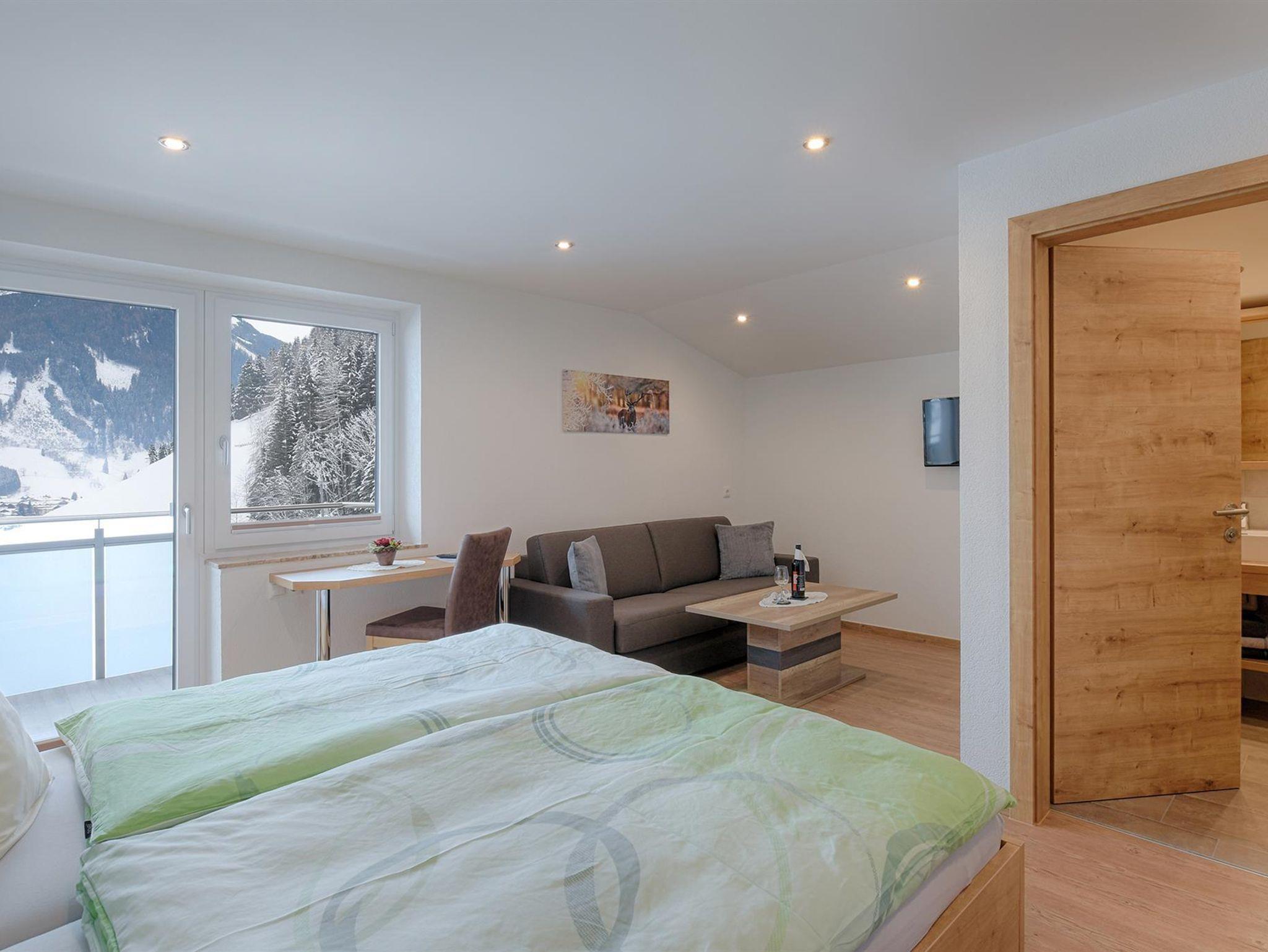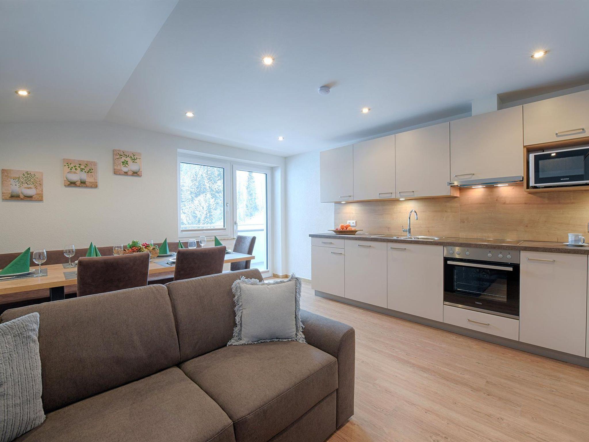 • Appartement Anna ab 4 bis 8 Personen ( 10 Personen auf Anfrage). Die große Wohnung hat auch eine komplett ausgestattete Wohnküche , SAT - TV , 3 Doppelzimmer davon ein Dppelzimmer mit einem Sofabett für zwei Personen, 2 Bäder mit Dusche und WC, ein WC extra, WLAN und Balkon mit schönem Ausblick auf die Skipiste und Rauris. Bis 4 Personen nur 2 Doppelzimmer und 1 Bad.