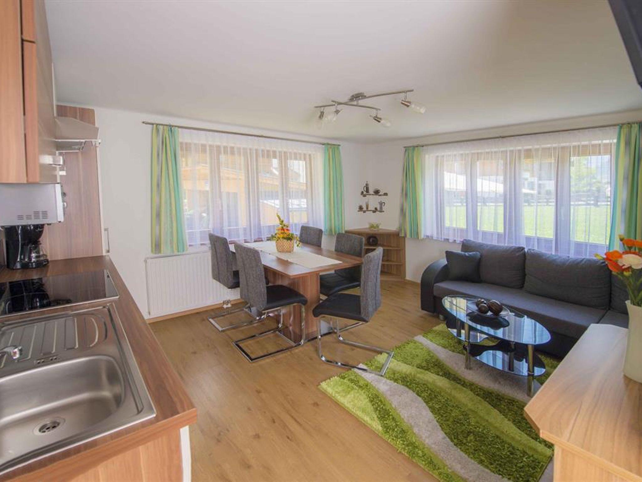 Beide verfügen über je zwei Schlafzimmer mit Doppelbett, Kleiderschrank und Garderobe, ein Badezimmer mit Dusche, Waschbecken und Toilette sowie einer geräumigen Wohnküche mit ausziehbarer Sofalandschaft, Essecke und Küchenzeile. Außerdem verfügt jedes Appartement über einen W-LAN- Anschluss und Kabel- TV. Bettwäsche, Handtücher, Badetücher, Haarföhn, Geschirrtücher, Koch- und Essgeschirr, Mikrowelle, Kaffeemaschine, Wasserkocher, Toaster, Backofen mit Ceran- Kochfeld, Kühlschrank mit Gefrierfach sind in den Wohnungen enthalten. Im Hauseingangsbereich befindet sich ein separater Schiraum mit Schuhtrockner. Auf Wunsch können Sie folgende Leistungen in Anspruch nehmen: - Kinderbett - Hochstuhl - Brotservice Preis für Hund pro Tag € 5,-