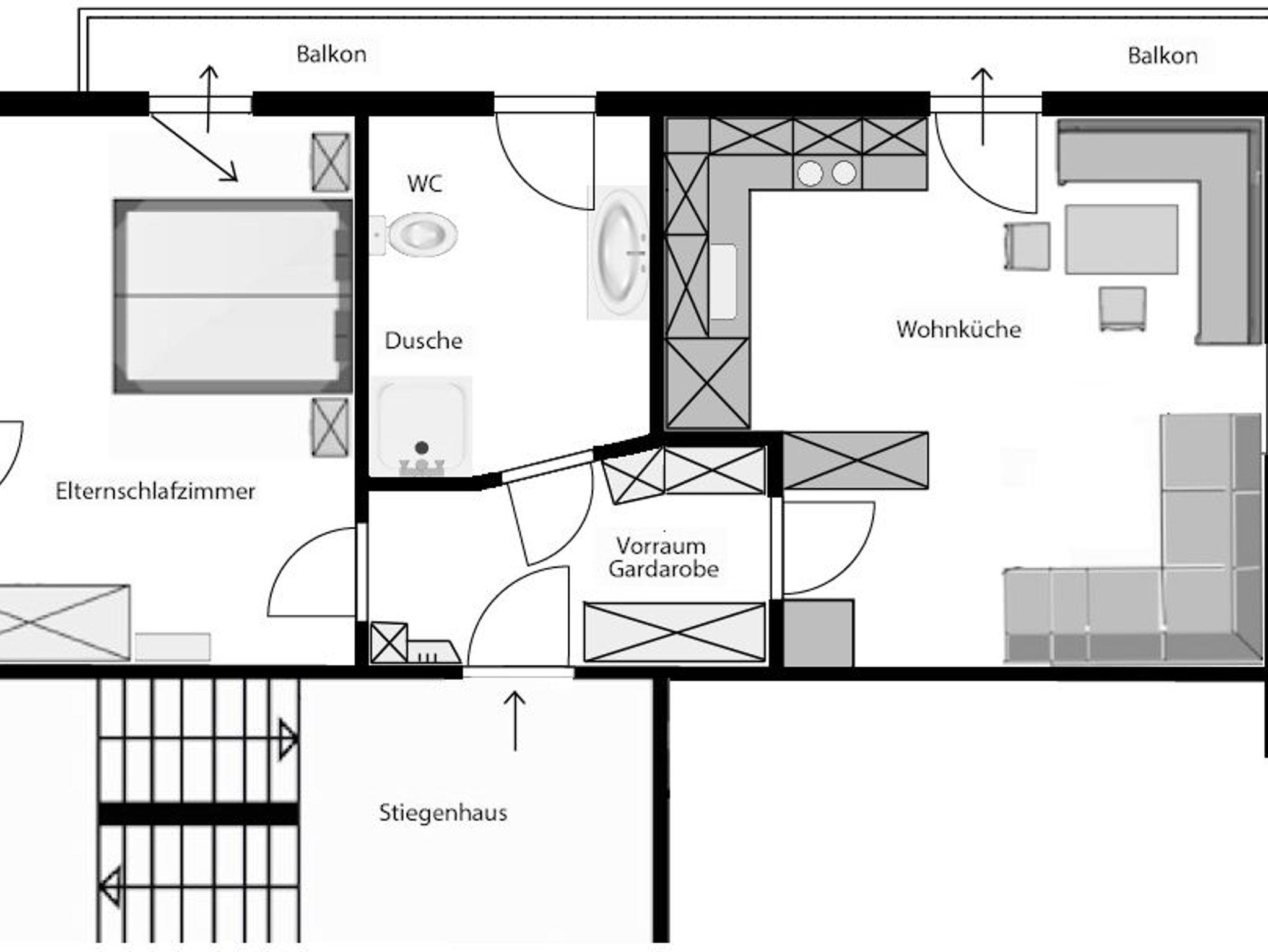 Nösslinghof, Appartements, Rainberg /1 Schlafräume/Bad, WC