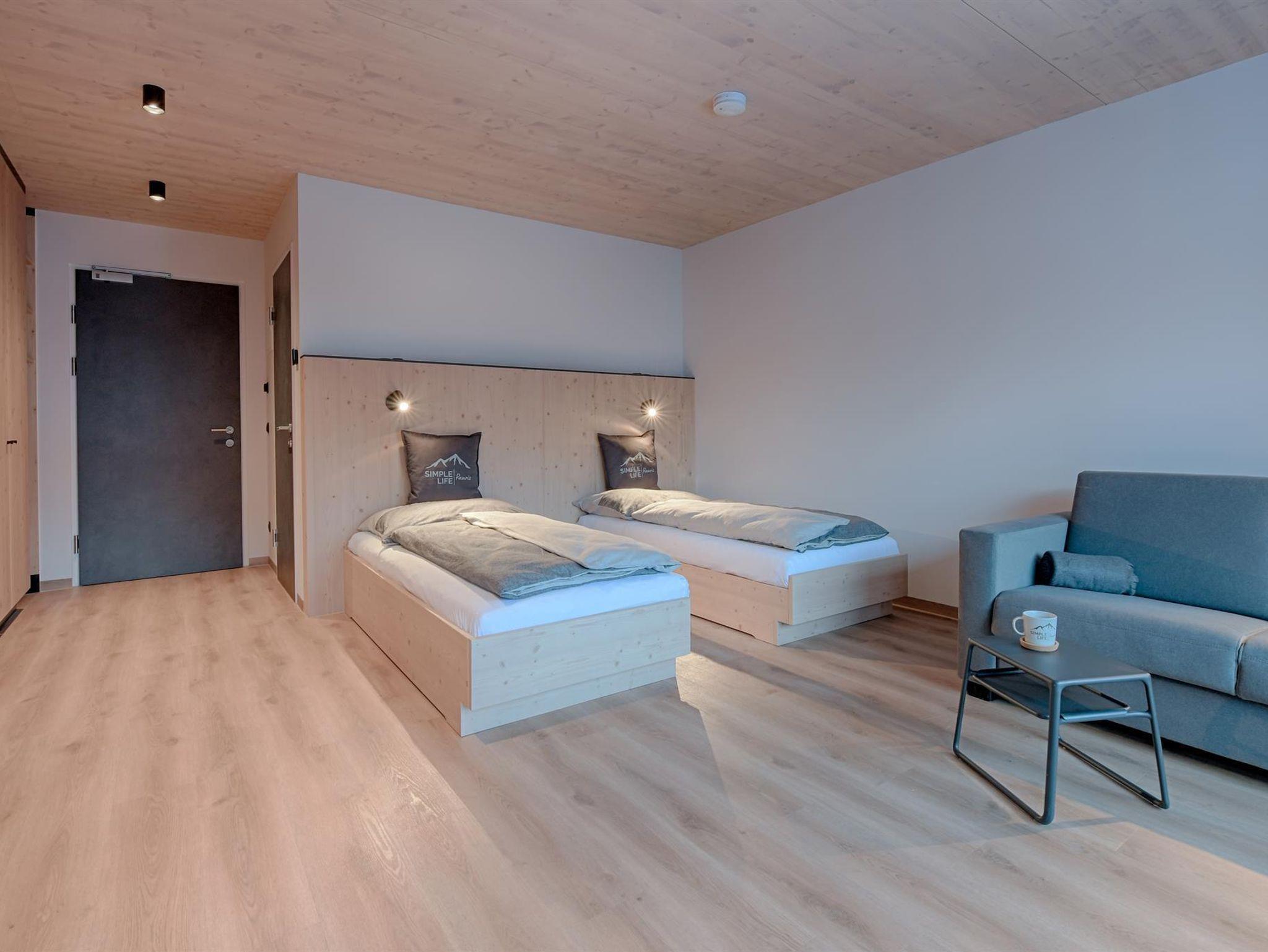 Unsere großzügigen 1 Zimmer Apartments punkten mit trennbaren Doppelbett, gratis WLAN, neueste Technologie (elektronischem Zutrittssystem, mobiler Handy Schlüssel), großen Terrassen oder Balkonen und einem besonders angenehmen Raumklima durch den kompletten Massivholzbau.