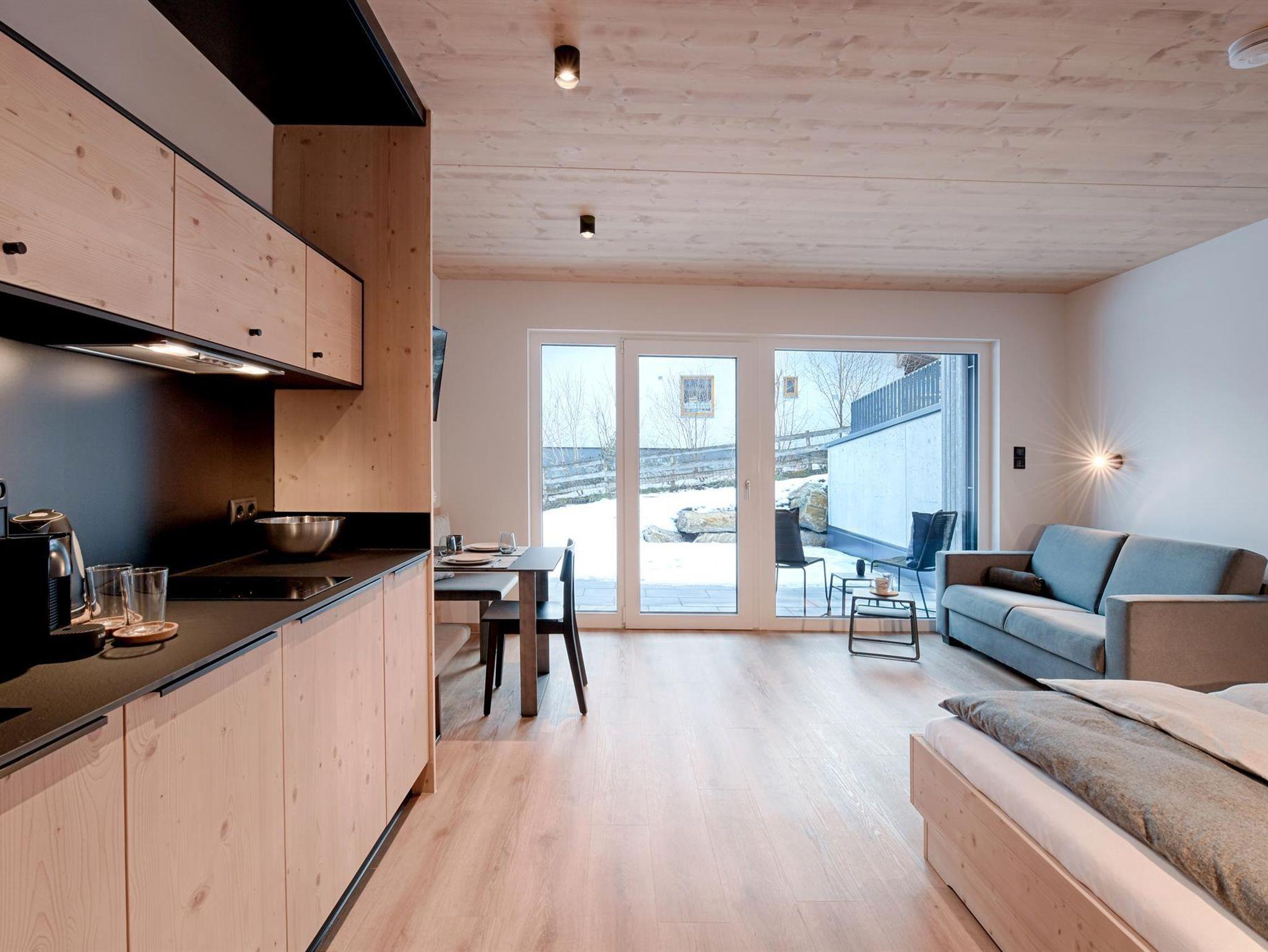 Klare, hochwertige, lichtdurchflutete, minimalistische Apartments mit großen Fensterfronten für den optimalen Ausblick auf unsere wunderschönen Berge und Skipisten! - direkt vor der Türe!