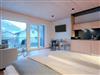 Der offene Wohn- und Schlafbereich, das Badezimmer und die vollfunktionale Küche lassen keine Wünsche offen – alles in klaren Formen und natürlichen Materialien gehalten.