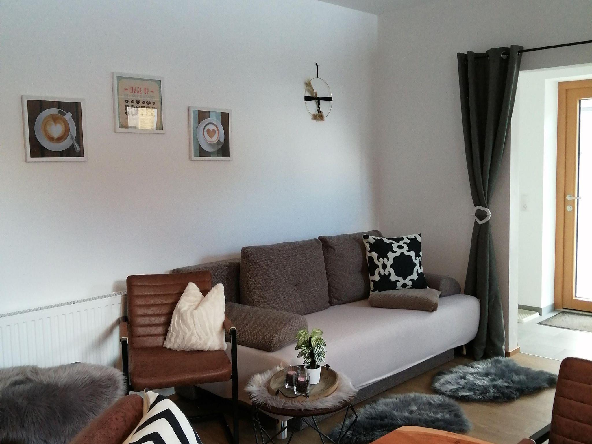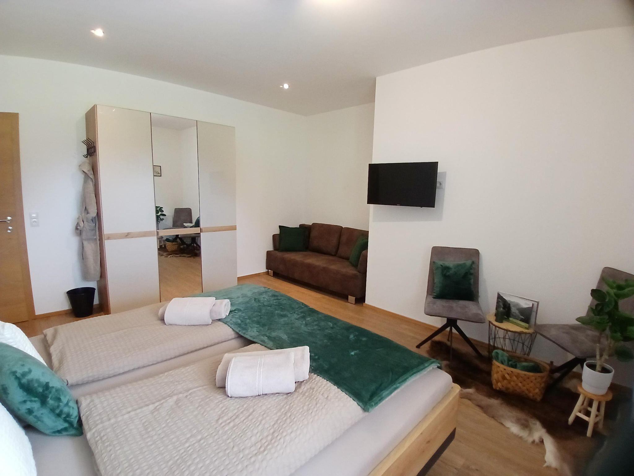 Im Erdgeschoß befindet sich das 80m2 große Appartement mit einer großen Wohnküche incl. Schlafsofa (ausziehbar), 2 separate Doppelbettzimmer, Toilette und Bad/Dusche getrennt, separater barrierefreier Eingang, geräumiger Vorraum; Kellerabteil für Ski/Rad Abstellung. Haustiere mit Rücksprache gestattet.