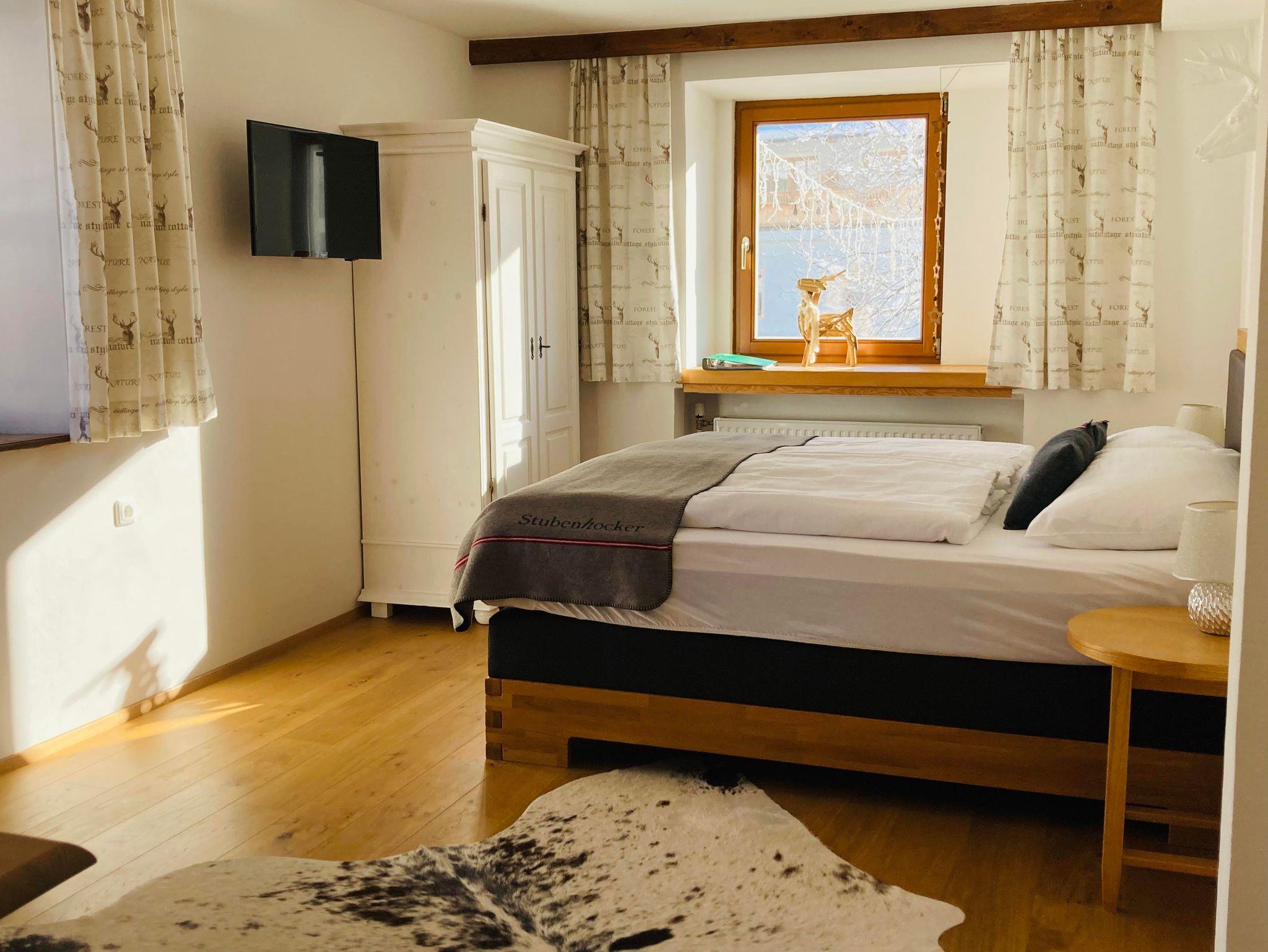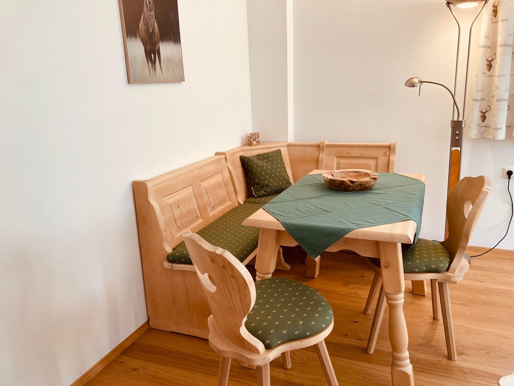 Dieses gemütliche Apartment für 4 Personen befindet sich im ersten Stock und hat einen Blick auf den Garten. Es verfügt über 1 separates Schlafzimmer und ein Schlafzimmer, das mit dem Esszimmer verbunden ist. Beide Zimmer haben ein schönes Doppelbett. Die Küche ist komplett ausgestattet und bietet Zugang zum gemütlichen österreichischen Essbereich. Die Wohnung hat auch ein Badezimmer mit Dusche und WC.