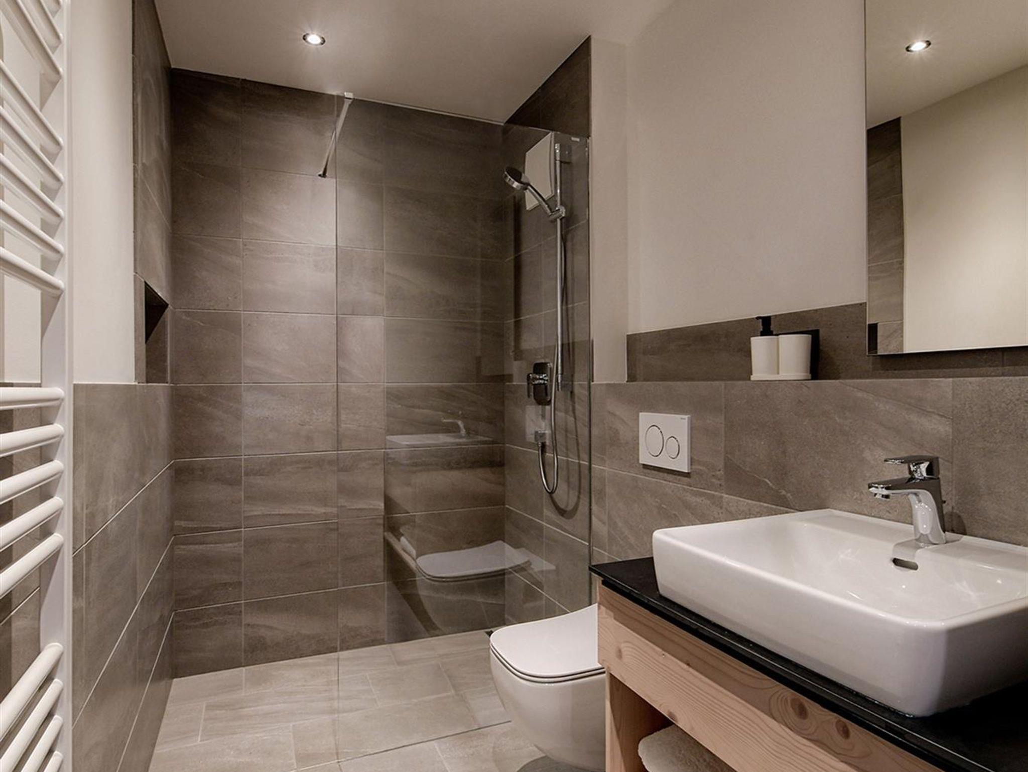 • Badezimmer mit Dusche und WC; beheizter Handtuchtrockner