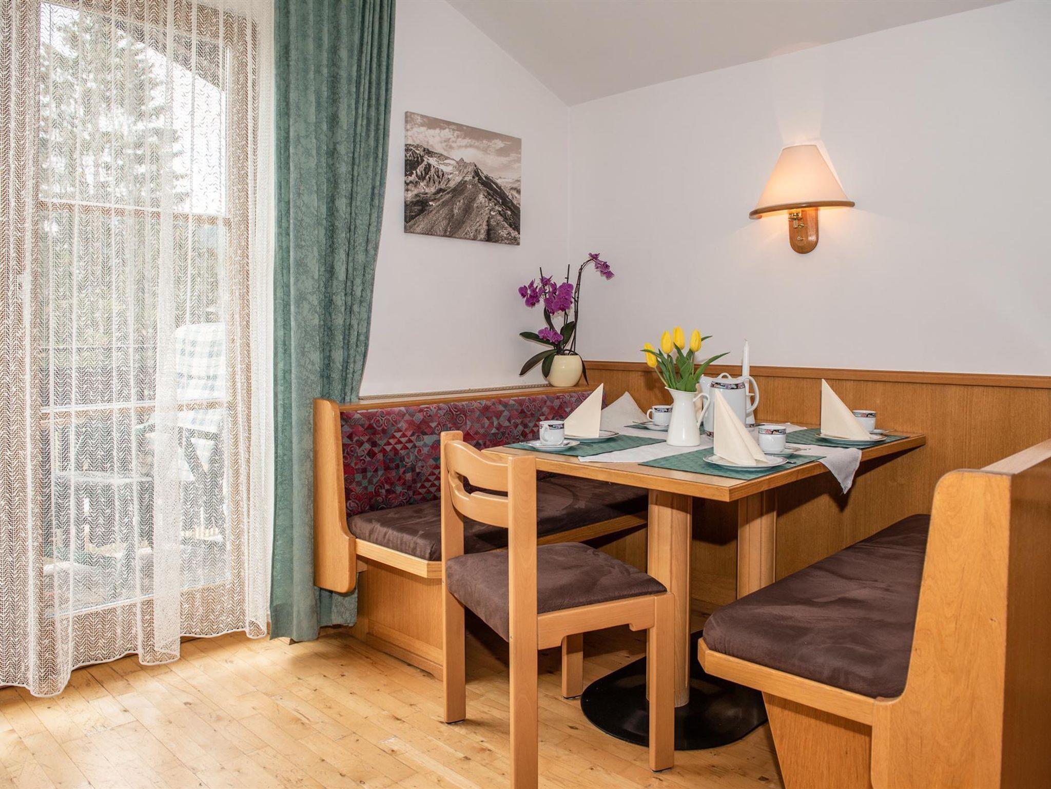 Gemütliche Frühstückspension in ruhiger, zentraler Lage. Großer Garten, Liegewiese. Nettes Stüberl mit Kachelofen. Familiäre Atmosphäre. Unsere gemütlichen und hellen Zimmer sind mit Dusche/WC, Föhn, gemütlicher Sitzecke, Flat-TV, Wlan-Zugang gratis, Balkon südseitig mit herlichen Bergpanoramablick sowie Parkettböden ausgestattet. AB SOMMER 2016 NP-SOMMERCARD IM ZIMMERPREIS INKLUSIVE; SEHR VIELE VERGÜNSTIGUNGEN. 2 Ferienwohnungen für 2 bis 5 Personen.