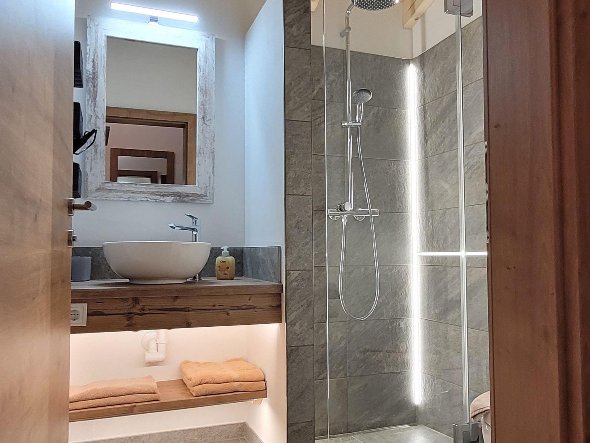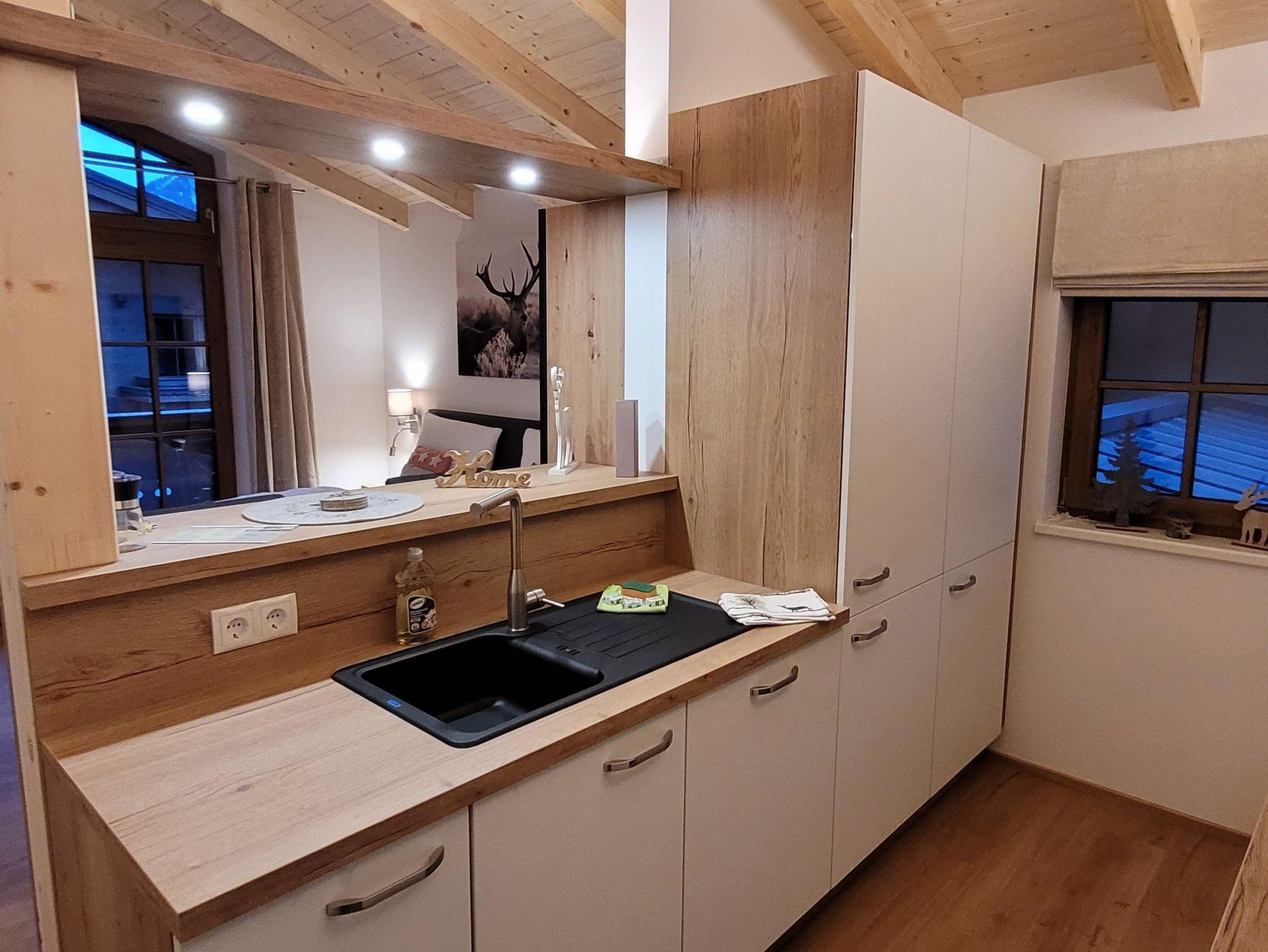 Das Appartement befindet sich im Obergeschoß und hat Küche, Wohnzimmer und Schlafzimmer in einem. Darüber hinaus haben wir ein modernes und gemütliches Bad mit Fenster. Wenn Sie von Ihren Unternehmungen zurückkehren können Sie sich an der in die Wohnküche integrierten Bar erholen. Vom großzügig gestalteten und gemütlich und hochwertig eingerichteten Wohn- Essbereich mit großem TV Flachbildschirm haben Sie einen Blick auf auf die Rauriser Berge. Vor dem Wohn- Essbreich haben Sie einen nach Süden ausgerichteten Balkon.