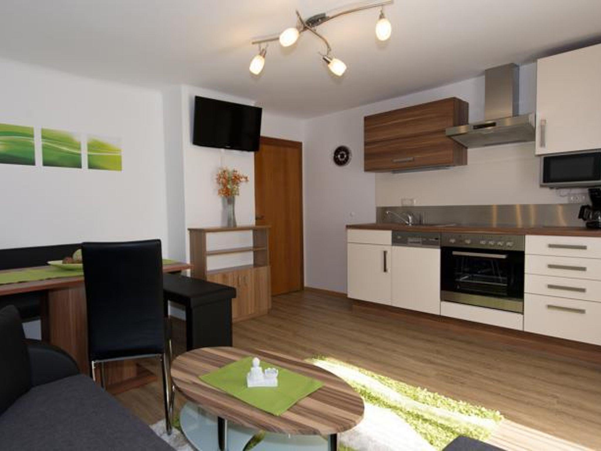 Beide verfügen über je zwei Schlafzimmer mit Doppelbett, Kleiderschrank und Garderobe, ein Badezimmer mit Dusche, Waschbecken und Toilette sowie einer geräumigen Wohnküche mit ausziehbarer Sofalandschaft, Essecke und Küchenzeile. Außerdem verfügt jedes Appartement über einen W-LAN- Anschluss und Kabel- TV. Bettwäsche, Handtücher, Badetücher, Haarföhn, Geschirrtücher, Koch- und Essgeschirr, Mikrowelle, Kaffeemaschine, Wasserkocher, Toaster, Backofen mit Ceran- Kochfeld, Kühlschrank mit Gefrierfach sind in den Wohnungen enthalten. Im Hauseingangsbereich befindet sich ein separater Schiraum mit Schuhtrockner. Auf Wunsch können Sie folgende Leistungen in Anspruch nehmen: - Kinderbett - Hochstuhl - Brotservice Preis für Hund pro Tag € 5,-