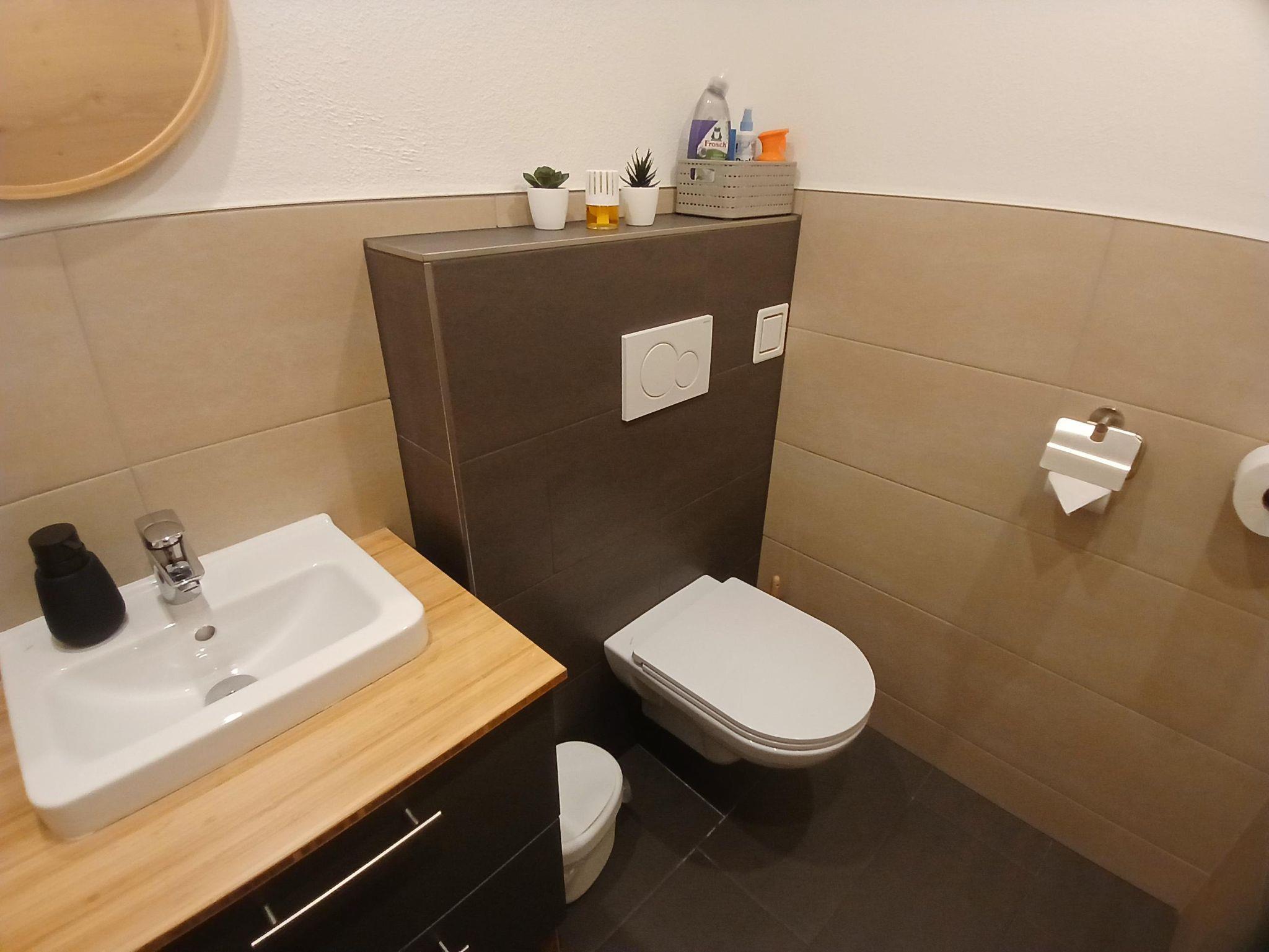Im 2 Obergeschoß befindet sich die komplett neu ausgestattete Wohnung mit einer Dachterrasse und Blick auf den hohen Sonnblick. Das Appartement hat 2 Schlafräume, WC und Dusche getrennt.