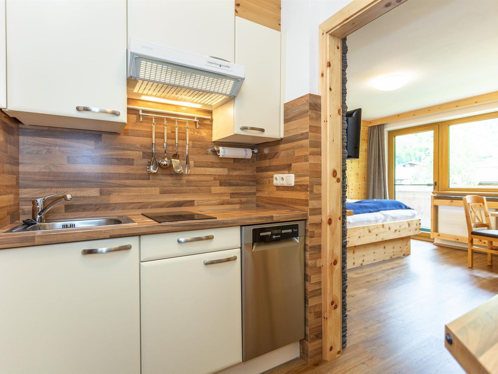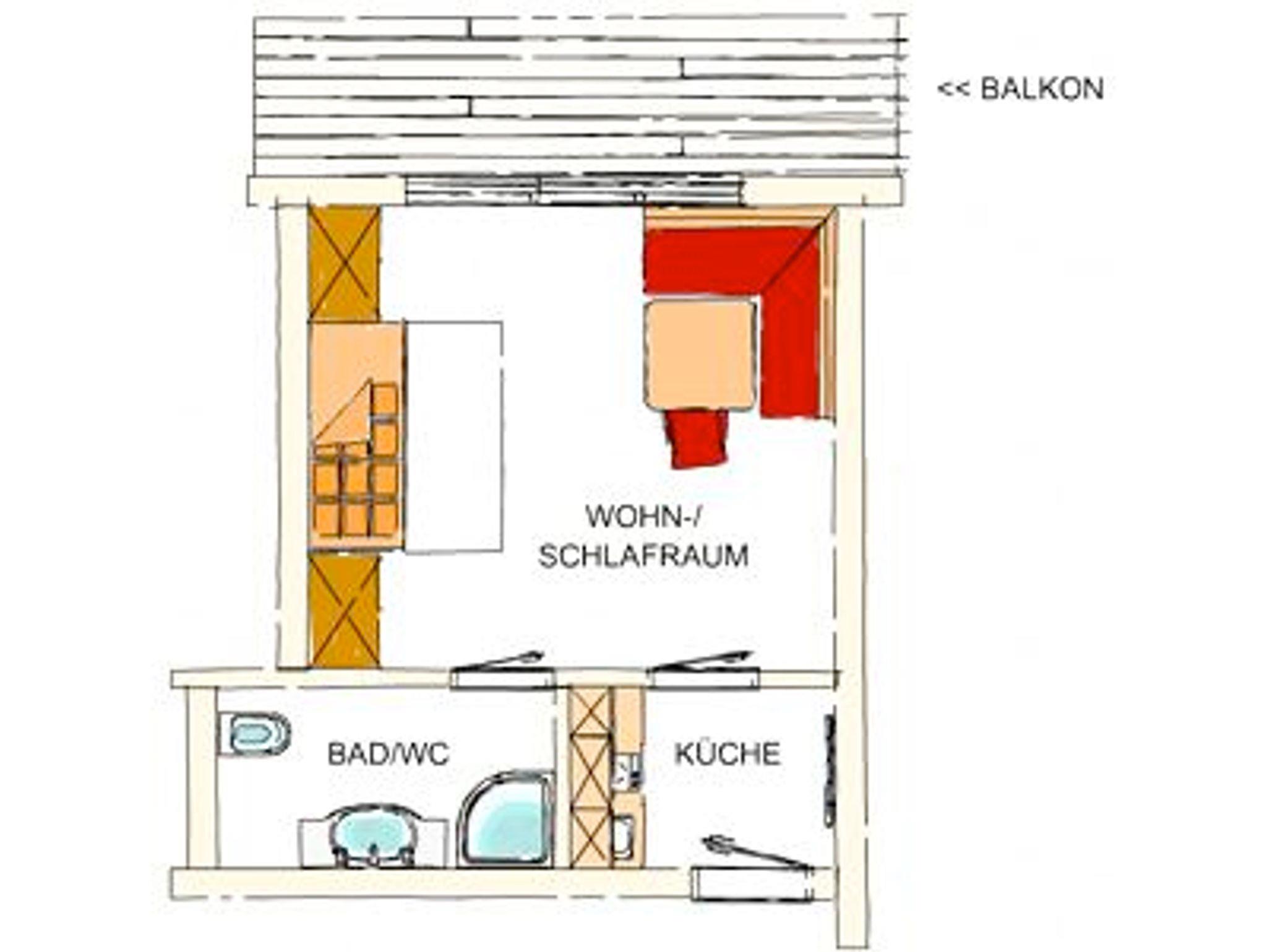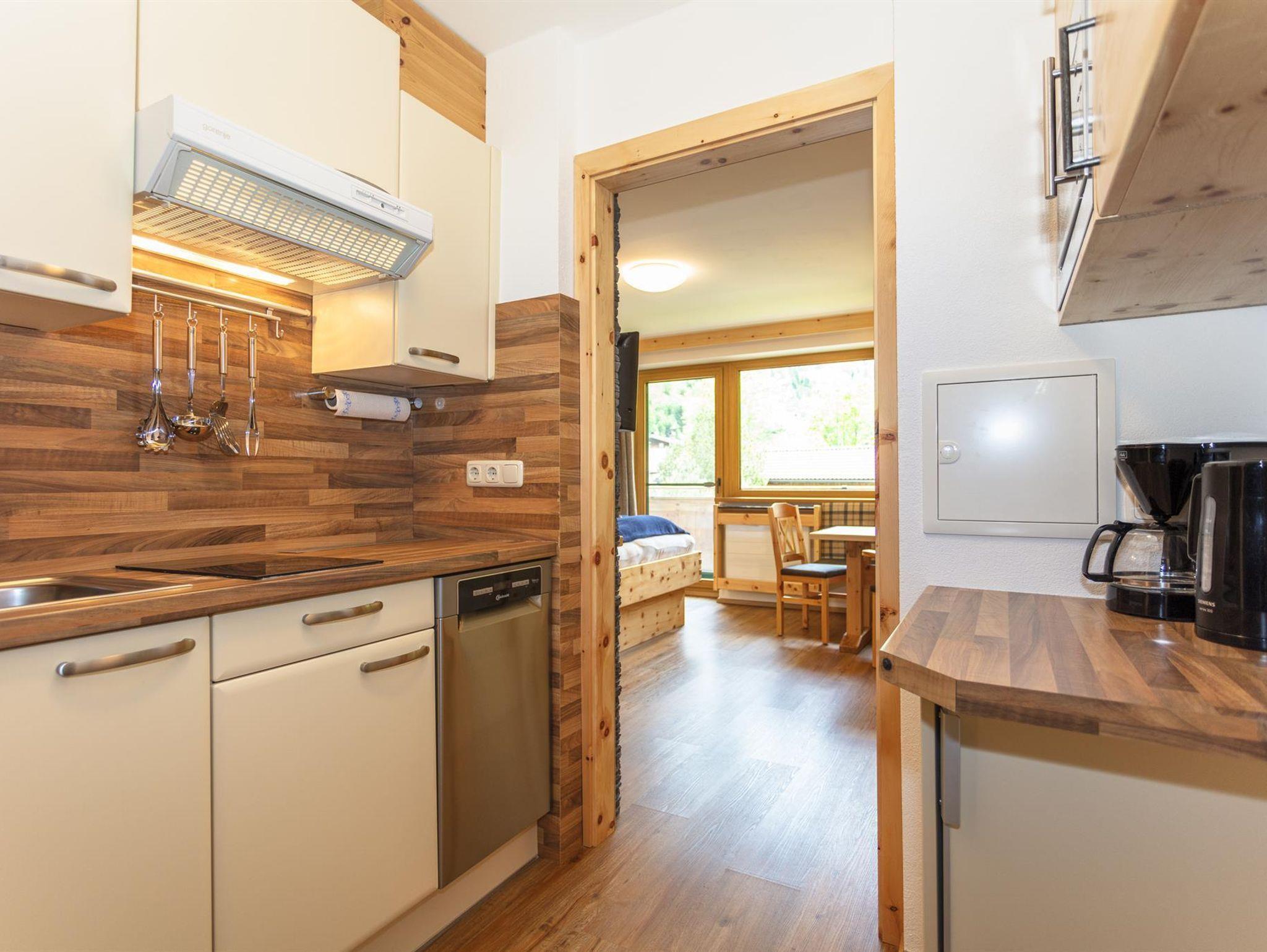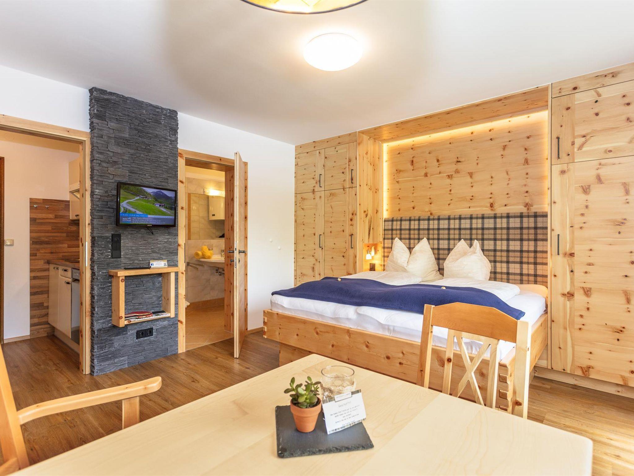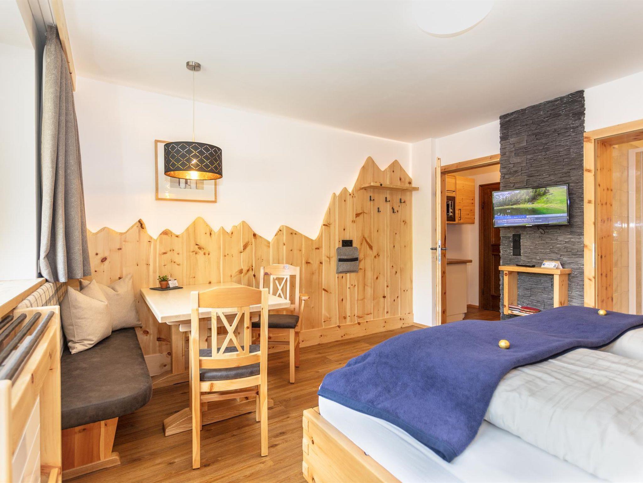 Typ-1: Sonnblick u. Goldberg: gemütlich eingerichtete Wohnung mit Wohn- Schlafraum für 2 Personen, inkl. Essecke, die Küche im Vorraum der Wohnung, Südbalkon mit Blick auf die Dreitausender des Nationalparks. Zustellbett möglich.