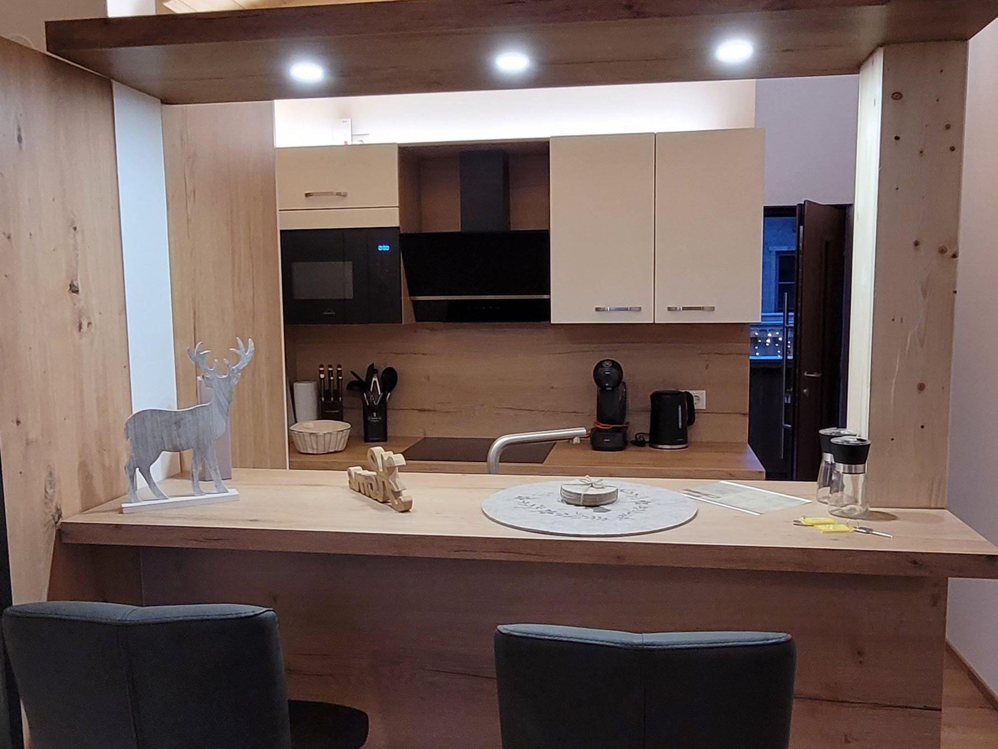 Das Appartement befindet sich im Obergeschoß und hat Küche, Wohnzimmer und Schlafzimmer in einem. Darüber hinaus haben wir ein modernes und gemütliches Bad mit Fenster. Wenn Sie von Ihren Unternehmungen zurückkehren können Sie sich an der in die Wohnküche integrierten Bar erholen. Vom großzügig gestalteten und gemütlich und hochwertig eingerichteten Wohn- Essbereich mit großem TV Flachbildschirm haben Sie einen Blick auf auf die Rauriser Berge. Vor dem Wohn- Essbreich haben Sie einen nach Süden ausgerichteten Balkon.