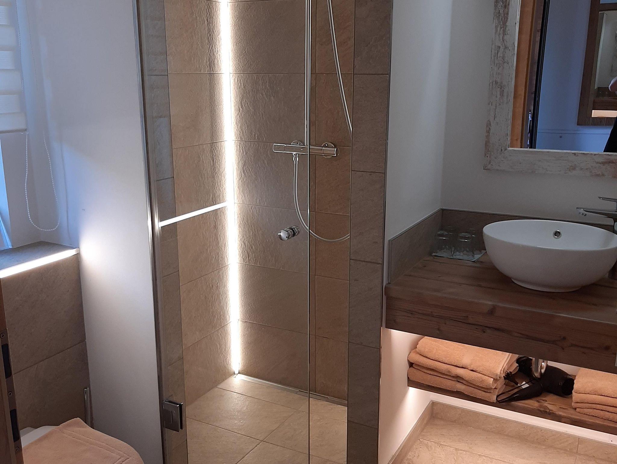 Das Appartement befindet sich im Obergeschoß und hat 3 Schlafzimmer(2 SZ mit Boxspringbett,1 SZ mit 2 Doppelstockbetten), TV- Flachbildschirm in jedem Zimmer, 2 moderne Bäder mit Dusche bzw. Badewanne und Fenster. Sobald Sie von Ihren Unternehmungen zurückkehren, können Sie sich an der, in die Wohnküche integrierten, Bar erholen und den großzügig gestalteten, gemütlichen und hochwertig eingerichteten Wohnbereich, inkl. großem TV-Flachbildschirm, genießen. Ein großer Sonnenbalkon gehört zu diesem Apartment, überzeugen Sie sich selbst von diesem wunderschönen premium Apartment.