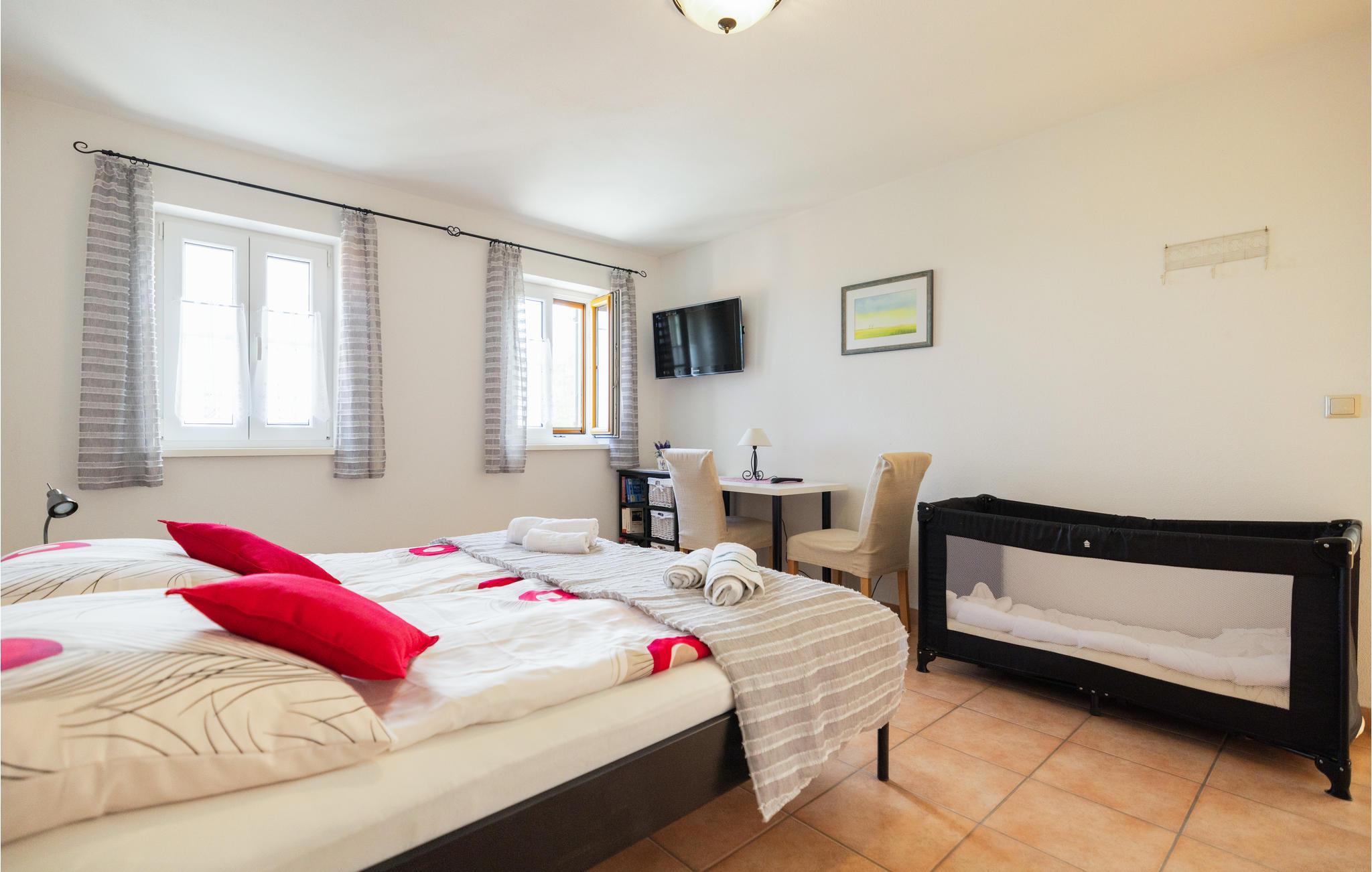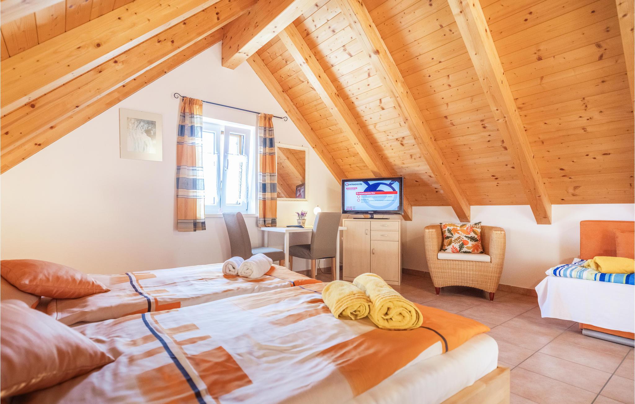 Bo i den lille by Rechnitz, i dette godt udstyrede og meget velplejede vinbondehus. Husets rum er godt udstyret, lyse og hyggelige, en vindeltrappe føre op til første sal hvor soveværelserne ligger. Få trin op til husets indgangsdør. Fra den overdækkede havepavillon bag huset er der udsigt over frugtplantager og vinmarker. I kælderen er der plads til at parkere jeres medbragte cykler. Vil I cykle længere tur gennem landskaberne og vinbjergene, så lej e-cykler i byen Rechnitz. Hos ejer kan I købe glimrende lokale vine, snapse og likører til rimelige priser (fra 6 til 20 EUR). Er I flere der gerne vil rejse sammen, så tal med ejer om at leje en yderligere lejlighed (pris på forespørgsel). Hund med på forespørgsel, betal på stedet.