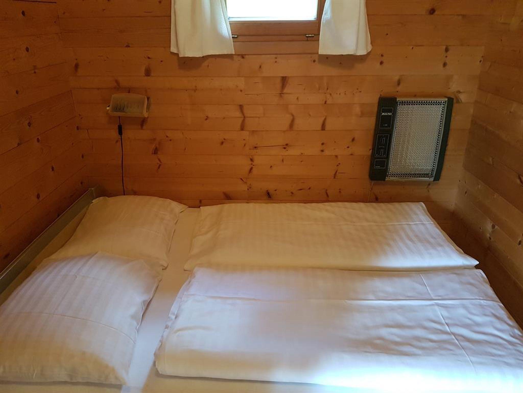 Entdecken Sie unsere Blockhütte C mit Ihren schönen österreichischen Charme. Sie ist unsere geräumigste Blockhütte und umfasst ca. 25m2. Beim Eintritt finden Sie den Wohnbereich mit einem Ecktisch und Stühlen. Die Blockhütte verfügt über 2 separate Schlafzimmer. Im ersten Zimmer befindet sich ein Doppelbett, das andere verfügt über ein Stockbett und ein Einzelbett.
