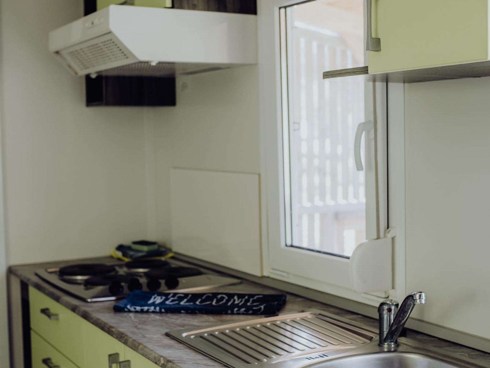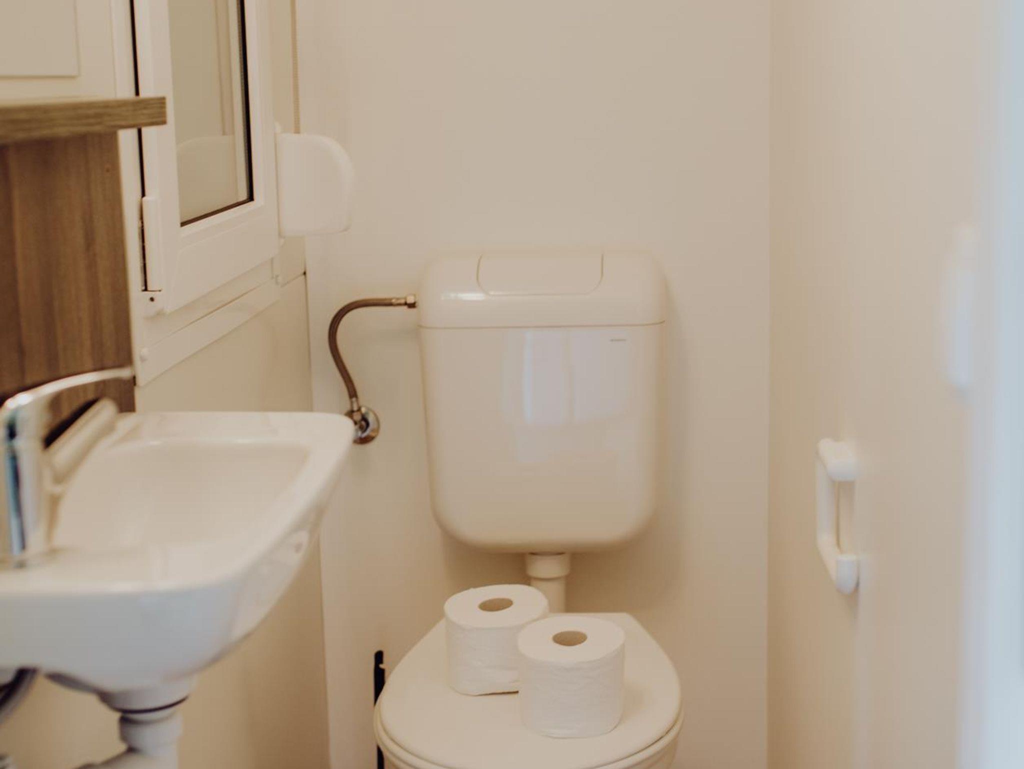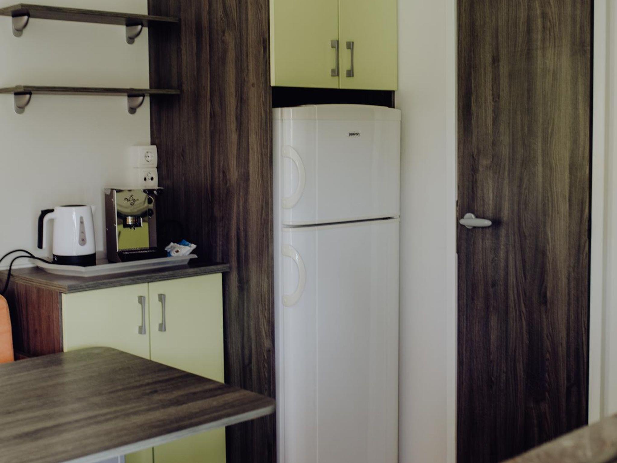 Die Mobilheime sind komplett eingerichtet. Sie verfügen über ein Wohnzimmer mit Küche, 2 Schlafzimmer, Dusche und Waschraum und eine separate Toilette. Die Küche ist komplett ausgestattet mit vier elektrischen Kochplatten, Kochgeschirr, Spüle und Kühlschrank.
