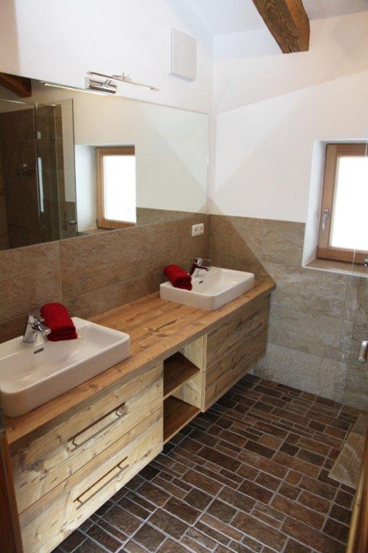 1 Badezimmer mit Dusche und Doppelwaschbecken
