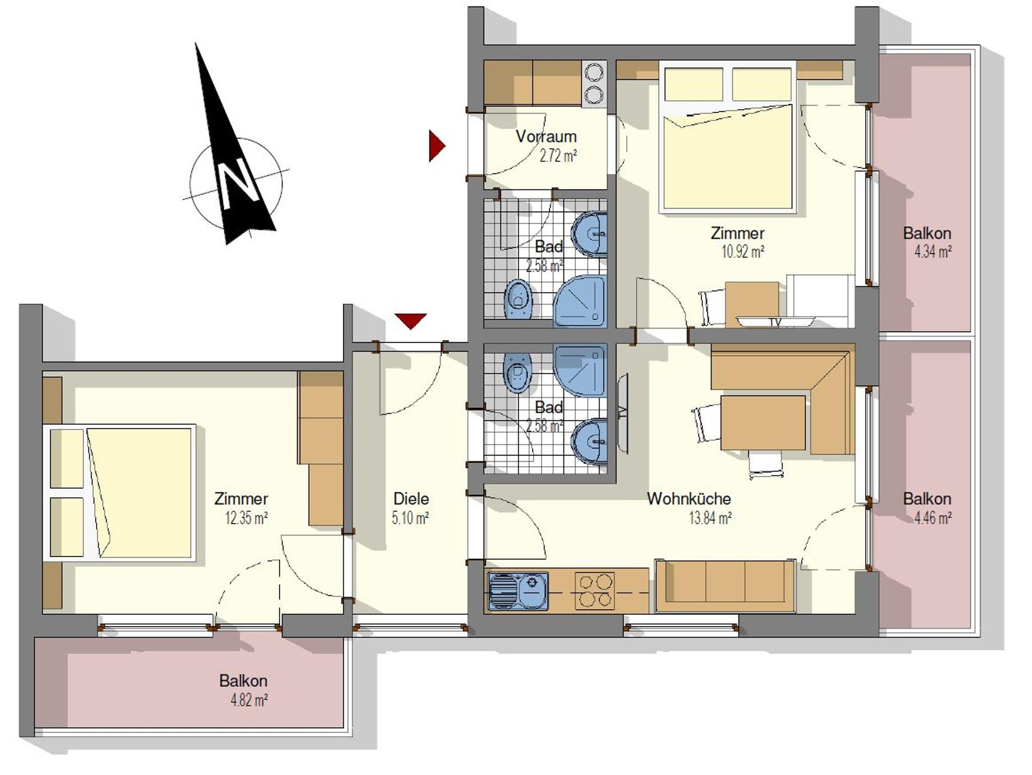 Sie sind bestens untergebracht in unserer Ferienwohnung Austria mit zwei getrennten Schlafzimmer inkl. Bettwäsche, Safe, Rolläden, zwei Bäder mit jeweils Dusche/WC, Fön, Handtücher, Küche inkl. Geschirr, Geschirrspüler, Geschirrtücher, Mikrowelle, Ceranfeld, Kaffeemaschine, Wasserkocher umv., Wohnzimmer mit Flat-TV, 1 Flat-TV im Schlafzimmer und 3 Balkone mit herrlichen Blick auf die Bergwelt.