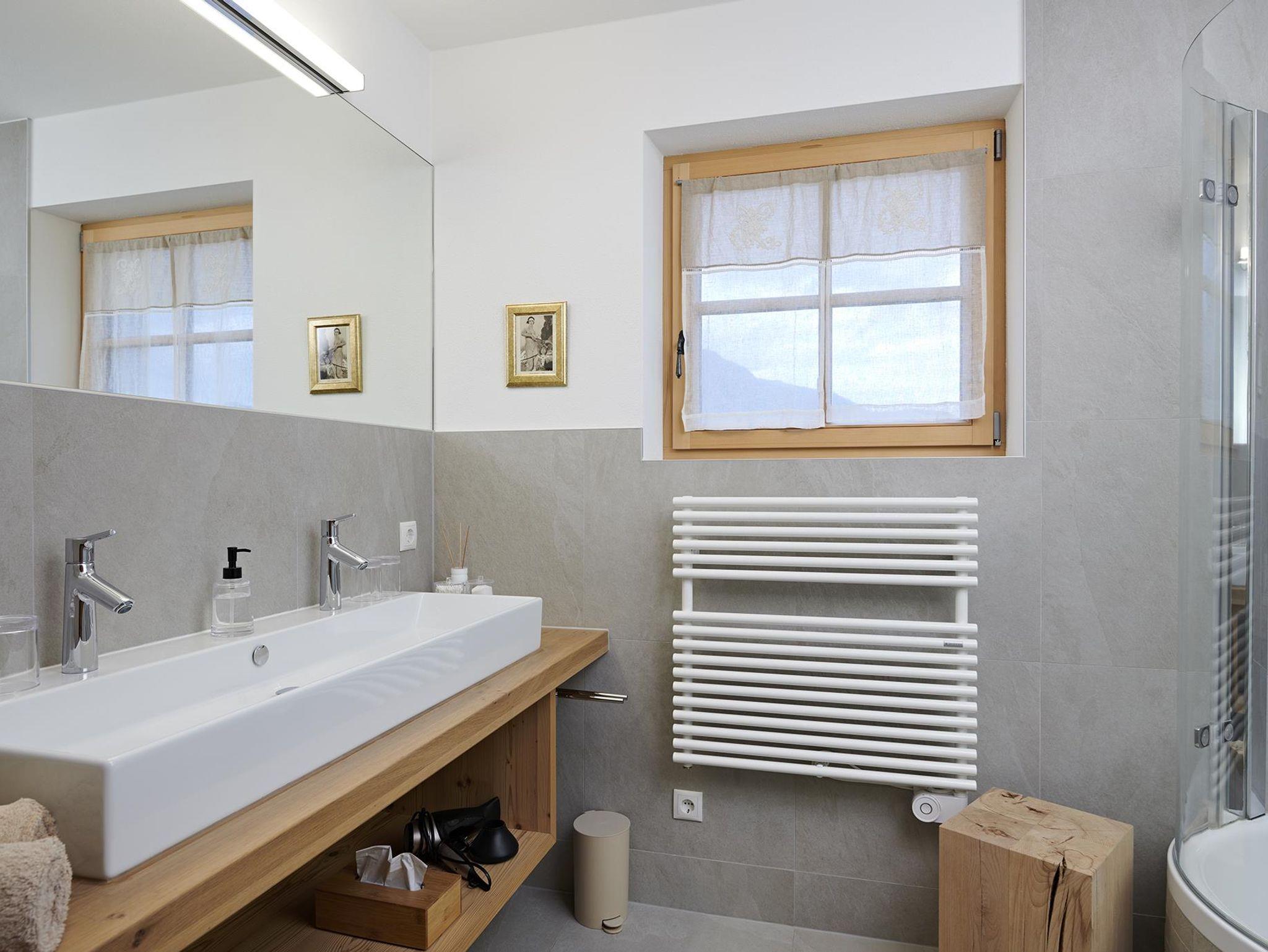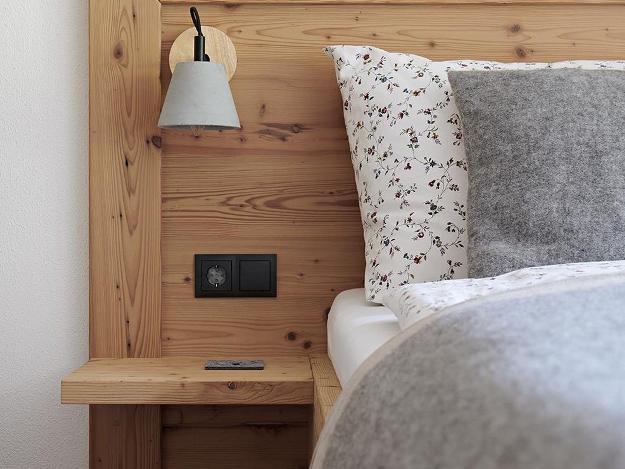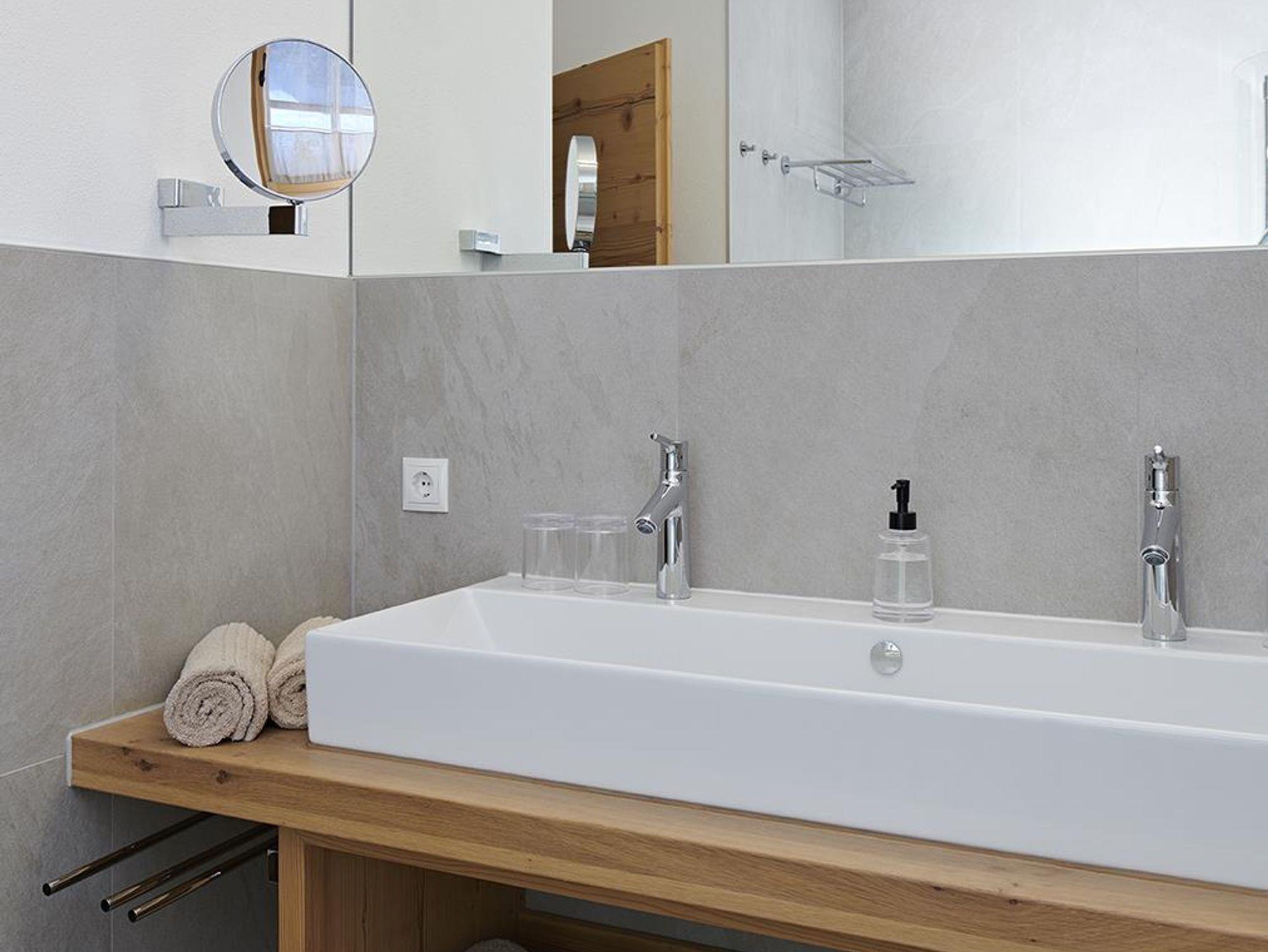 Mit 130 qm verfügt das Chalet Matty über vier Schlafzimmer (zwei Betten 160 x 200 cm, ein Bett 180 x 200 cm und einem Stockbett mit je 90 x 200 cm), in dem acht Personen und ein Kleinkind bis zu drei Jahre bequem Platz haben. Das Bad im Erdgeschoss ist mit einer modernen Duschbadewanne und einem Waschbecken, an dem zwei Personen gleichzeitig Platz finden, ausgestattet. In der Diele und im Flur findet sich ausreichend Platz und Ablagefläche für Garderobe, Wander- und Ski-Equipment.