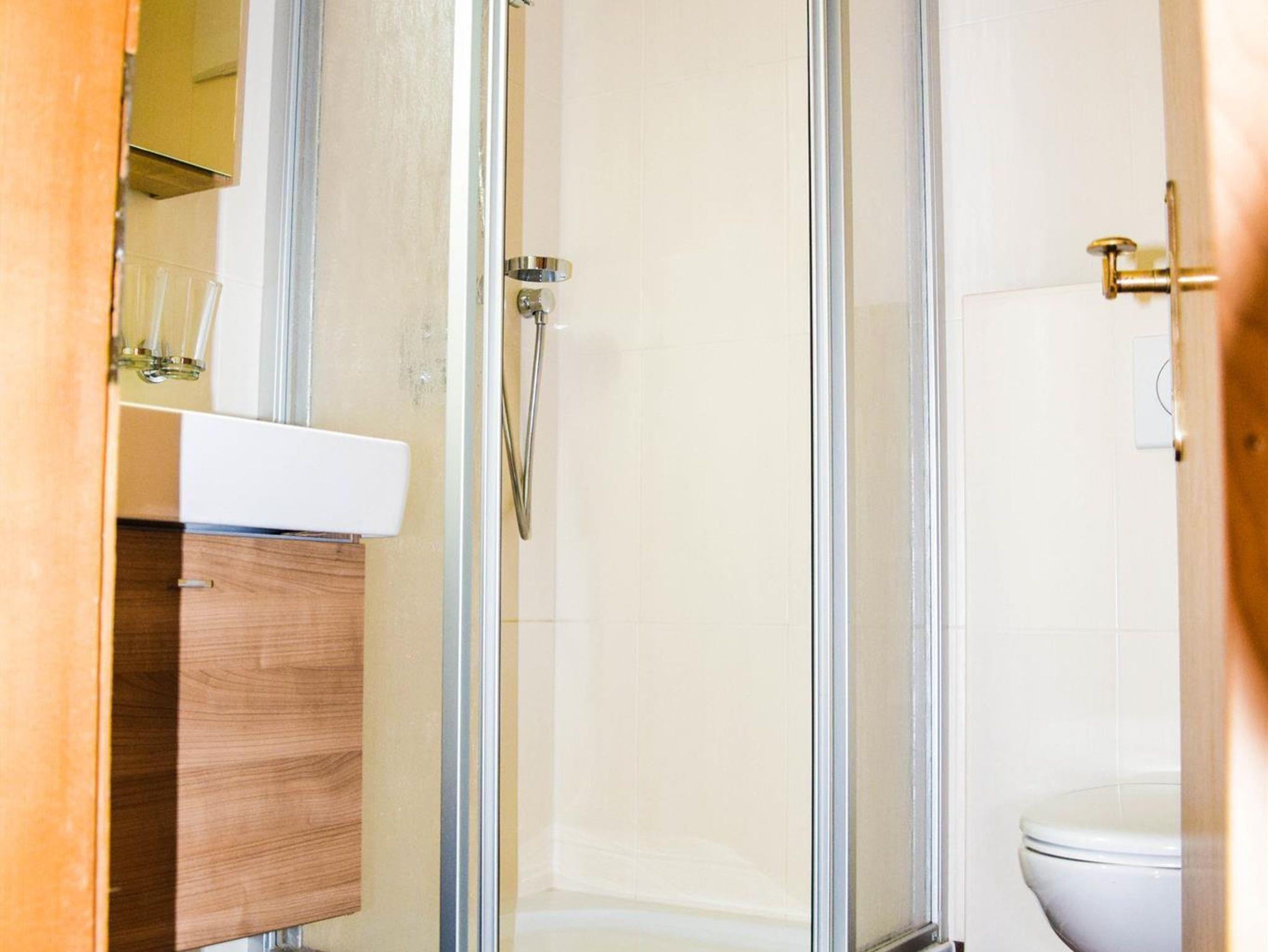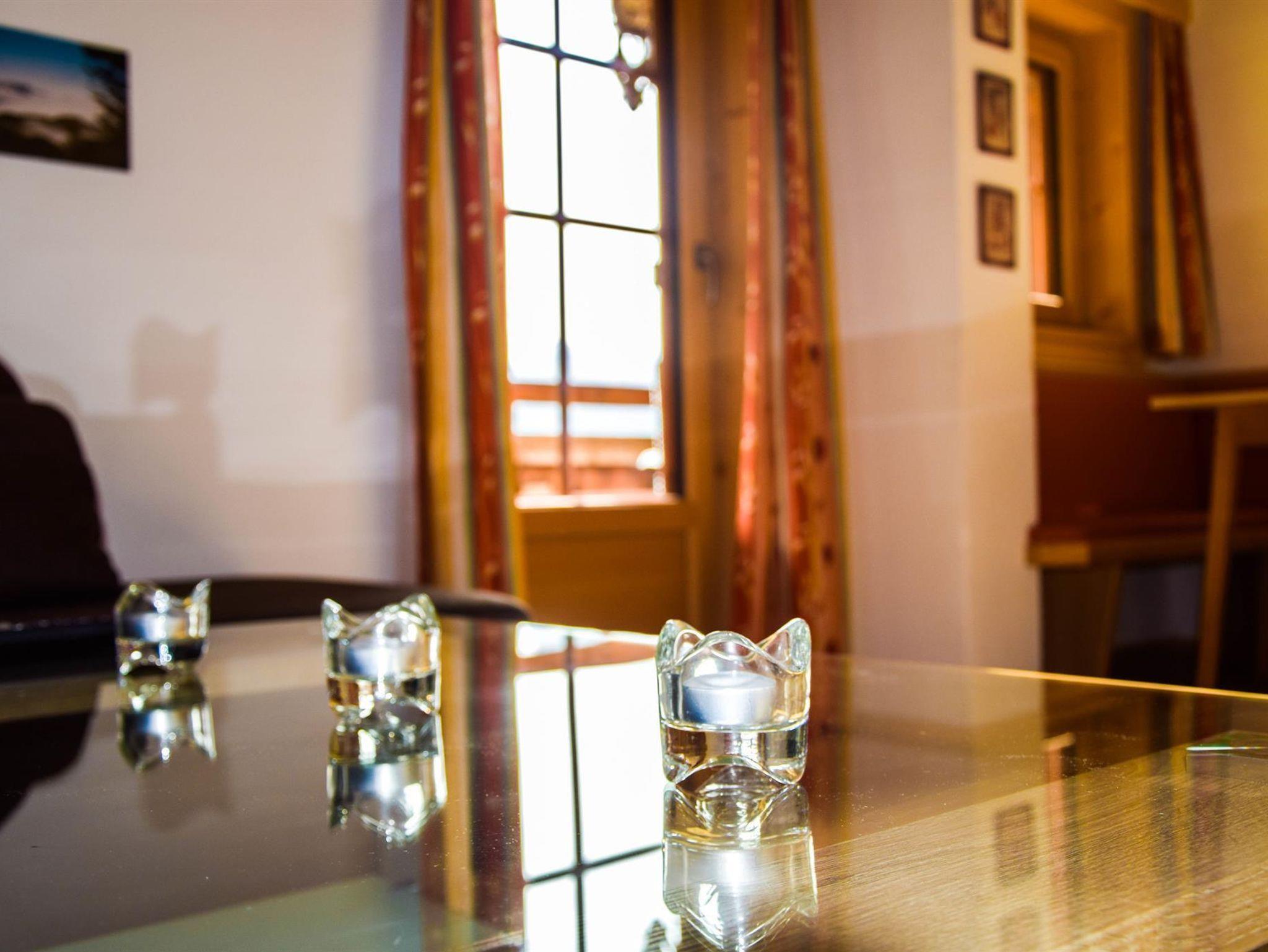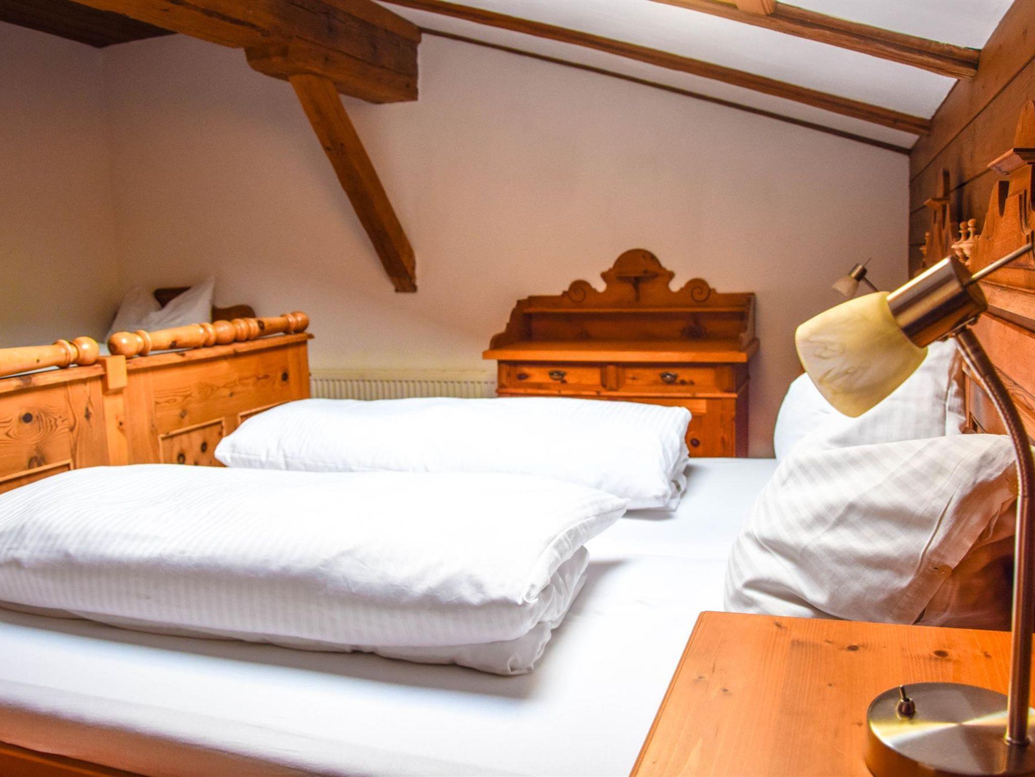 Ferienwohnung 46 m², 2-5 Personen mit Balkon, einem Schlafzimmer aus Zirbenholz mit Doppelbett und Einzelbett, 1 Wohnschlafraum ausgestattet mit Ausziehcouch für 2 Personen und Küche mit Elektroherd, Mikrowelle, Geschirrspüler, Ess- und Kochgeschirr, Badezimmer mit Dusche und WC.