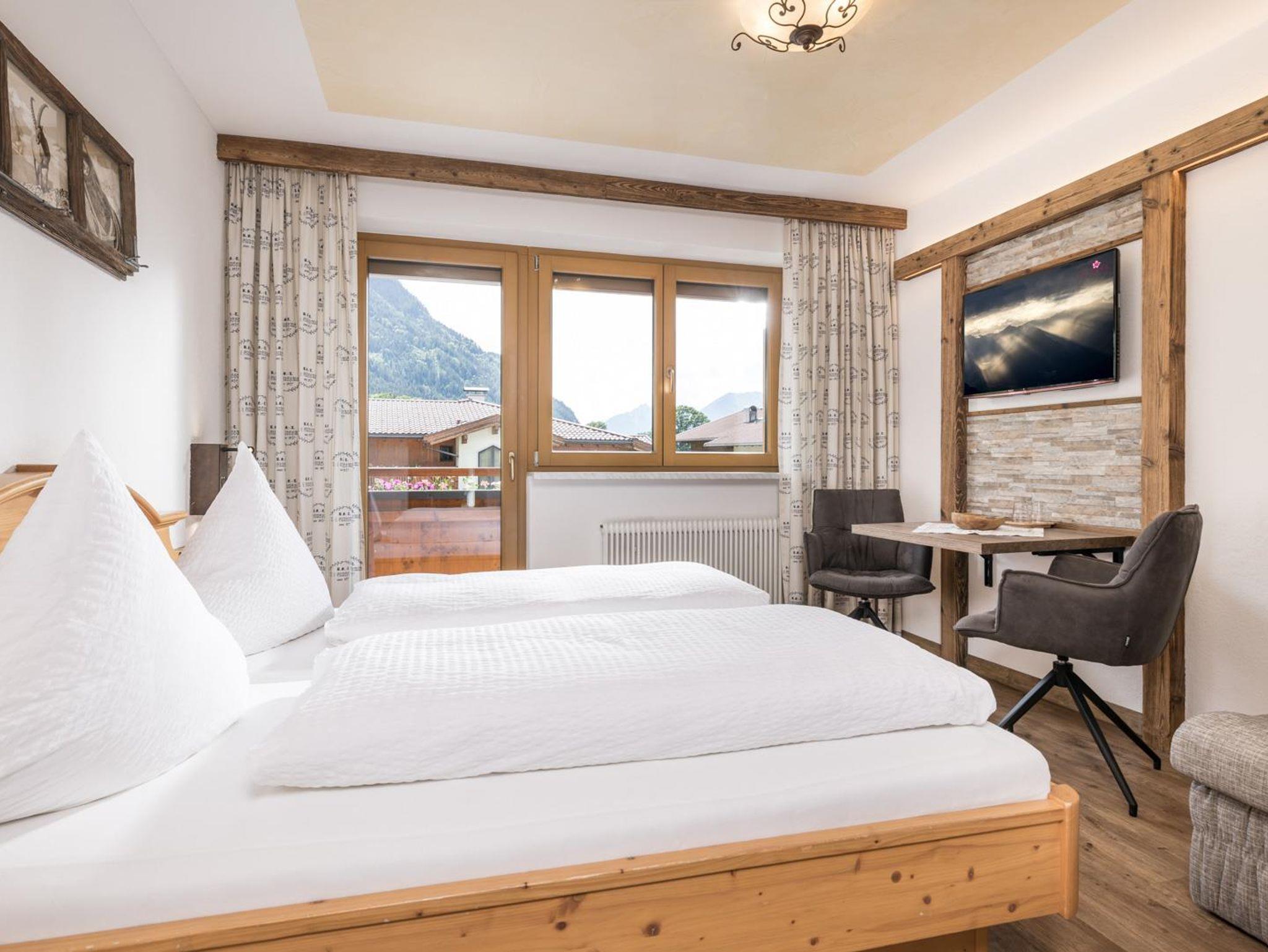 In der Pension Alpina sind Sie bestens untergebracht in unserem Doppelzimmer Romantik mit Dusche/WC, Fön, Rolläden, Handtücher, Radio, Flat-TV und Balkon mit herrlichem Blick auf die Bergwelt von Reith im Alpbachtal.