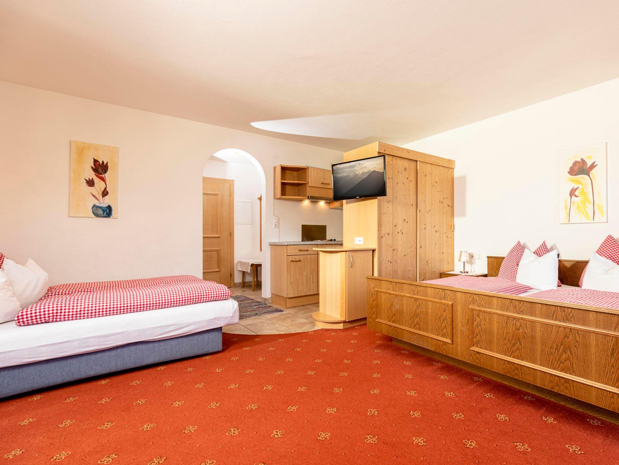 Großräumig und mit heimischen Naturmaterialien im alpinen Stil eingerichtet präsentiert sich unsere Ferienwohnung 7 (2. OG, ohne Aufzug). Ausgestattet mit einem Doppelbett und einem Sofabett sowie einem gemütlichen Wohnbereich bietet dieses Appartement Platz für bis zu vier Personen. Der Zugang zu zwei Balkonen ermöglicht es Ihnen, die wunderschöne Berglandschaft zu genießen und die frische, saubere Bergluft einzuatmen.
