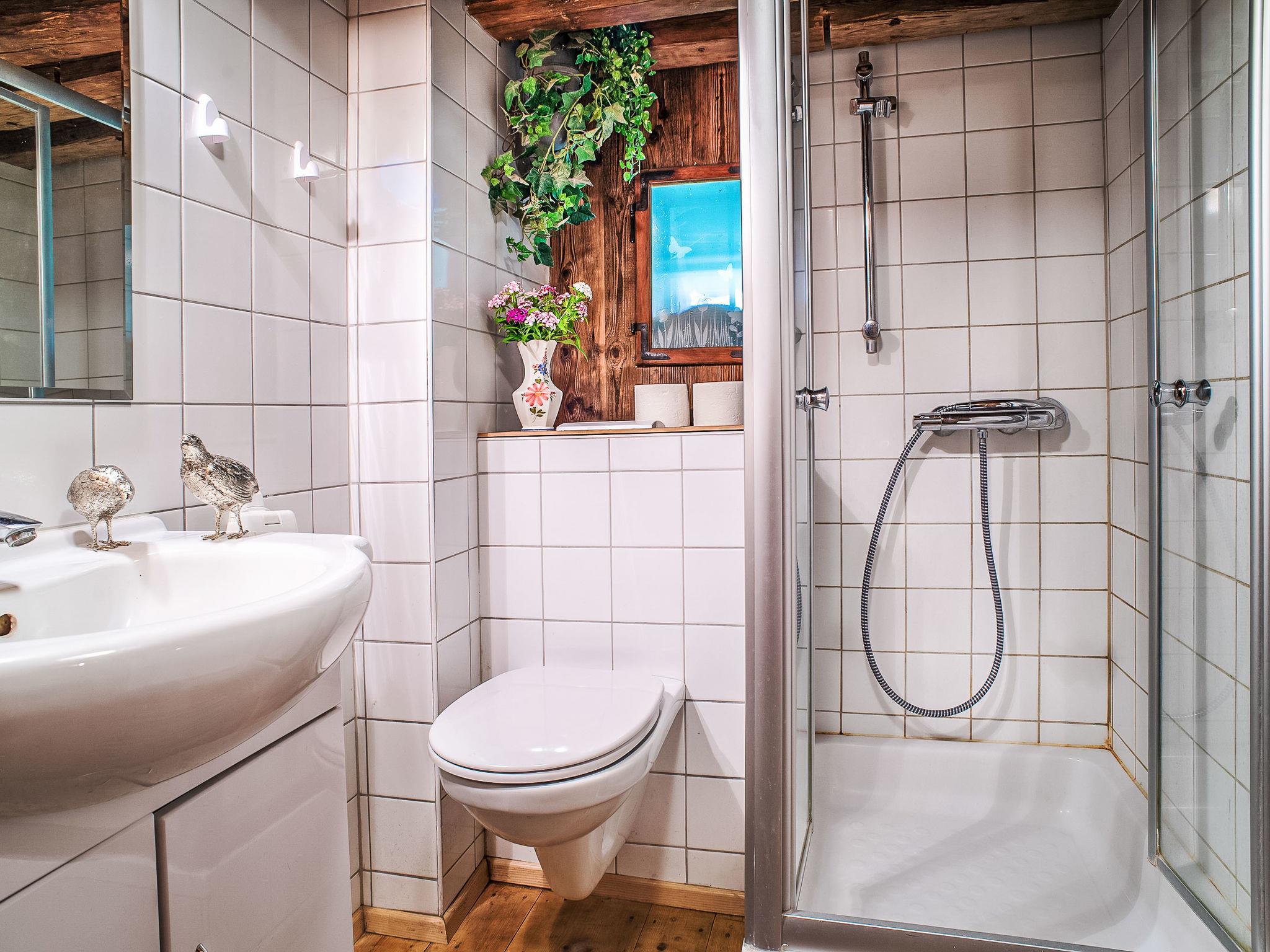 4-room chalet 120 m2 on 3 levels. Rustic and cosy furnishings: living/dining room with 1 sofabed, dining nook, satellite TV, video, radio and tiled stove. Exit to the patio. Small, open kitchen (4 hot plates, oven, microwave). Shower/WC. Upper floor: (exterior staircase), 2 rooms, each room with 1 sofabed, 1 double bed and satellite TV. Shower/WC. Top floor: (exterior staircase), 1 room with 1 sofabed, 1 double bed, hand-basin, separate WC and satellite TV. Balcony, patio. Terrace furniture, deck chairs. Beautiful view of the countryside. Maximum 2 pets/ dogs allowed. Please note: outside staircase. Low doors and ceilings.