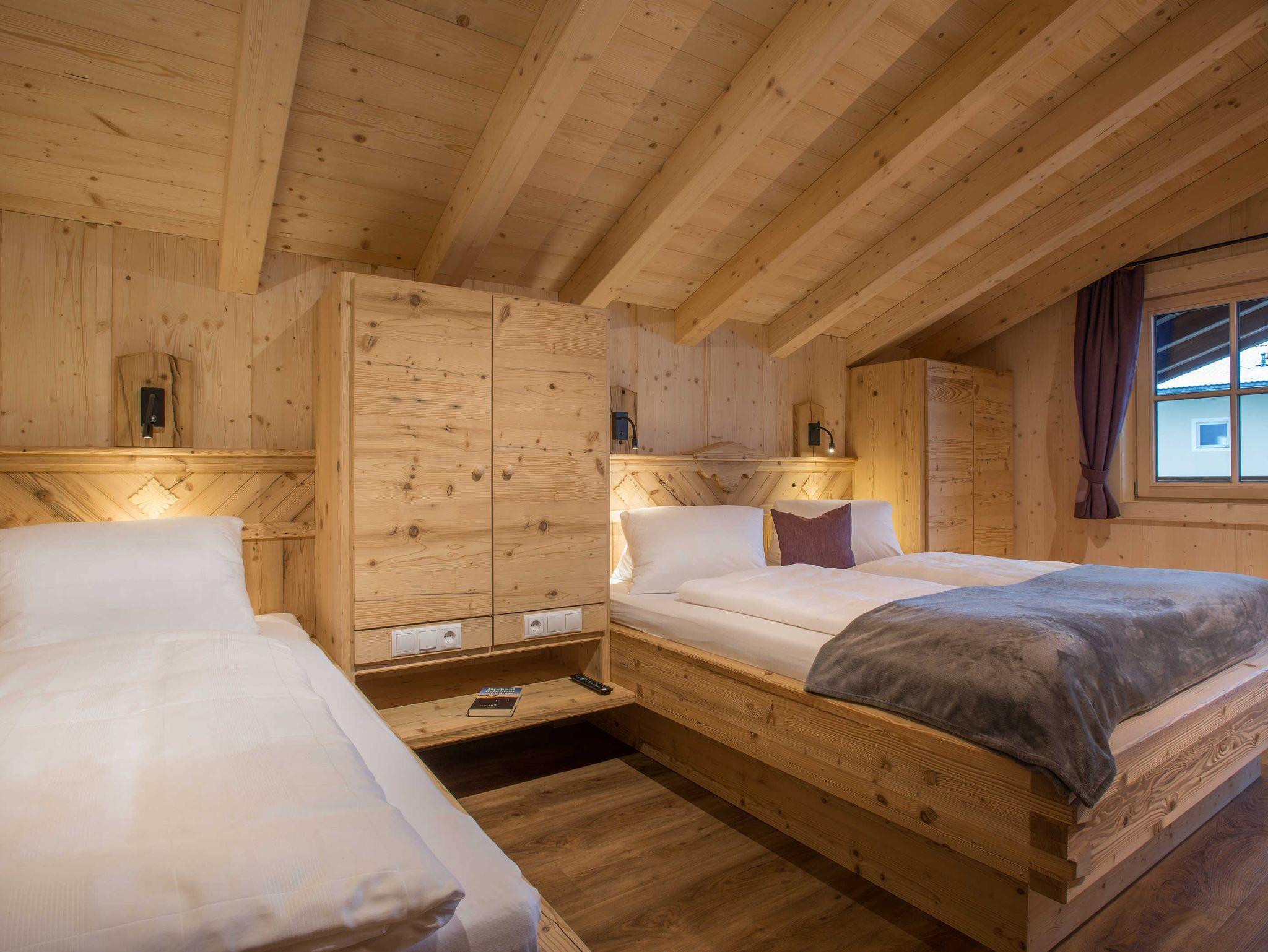 • 1 Schlafzimmer mit Doppelbett und Einzelbett im Obergeschoss