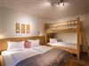• 1 Schlafzimmer mit Doppelbett und Stockbett sowie Badezimmer mit Dusche/WC